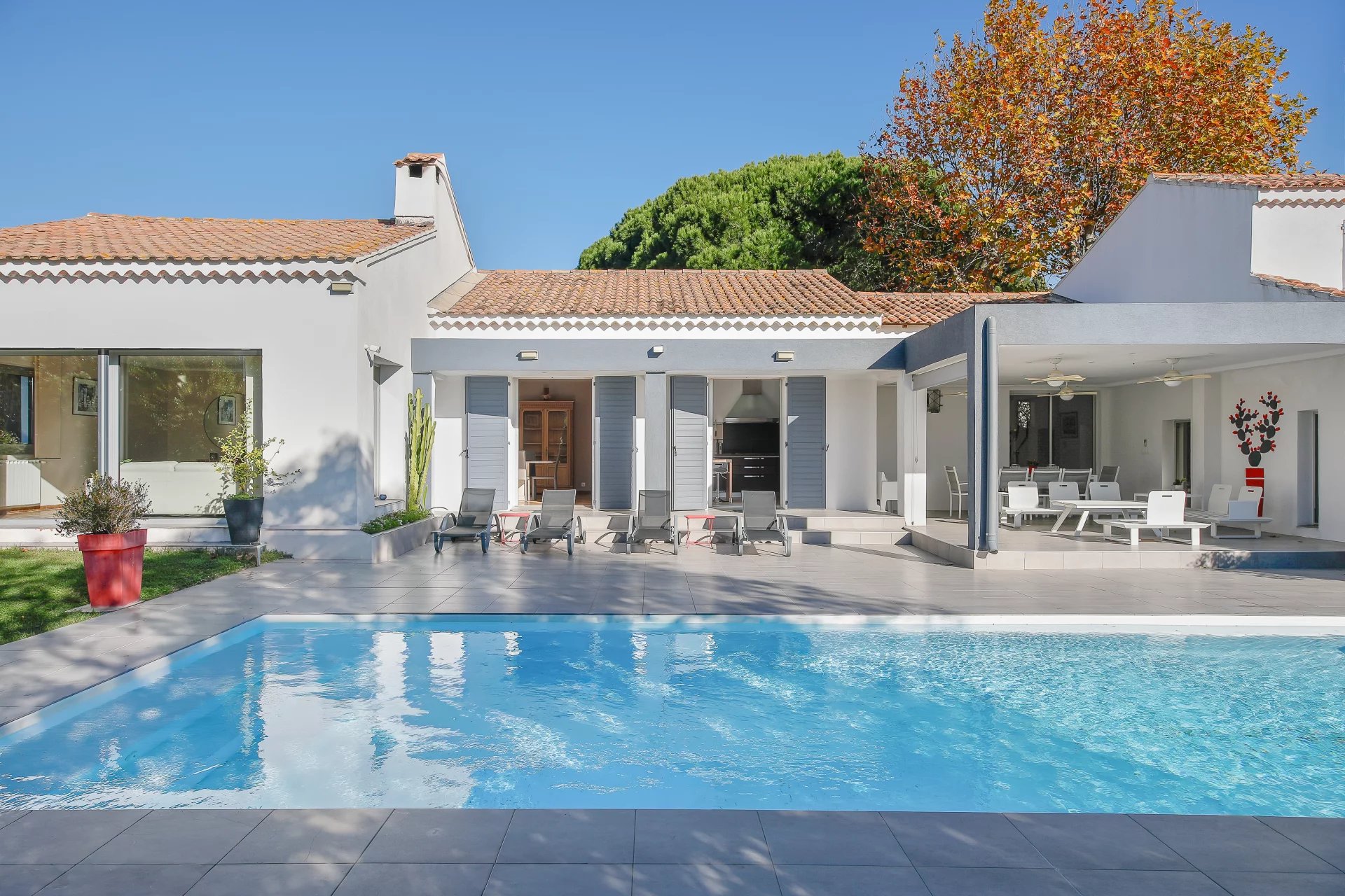 Located only a short walk from the village and just 10 minutes from the marina, this single-storey villa, with superb pool area, is set on a beautiful flat plot with swimming pool.