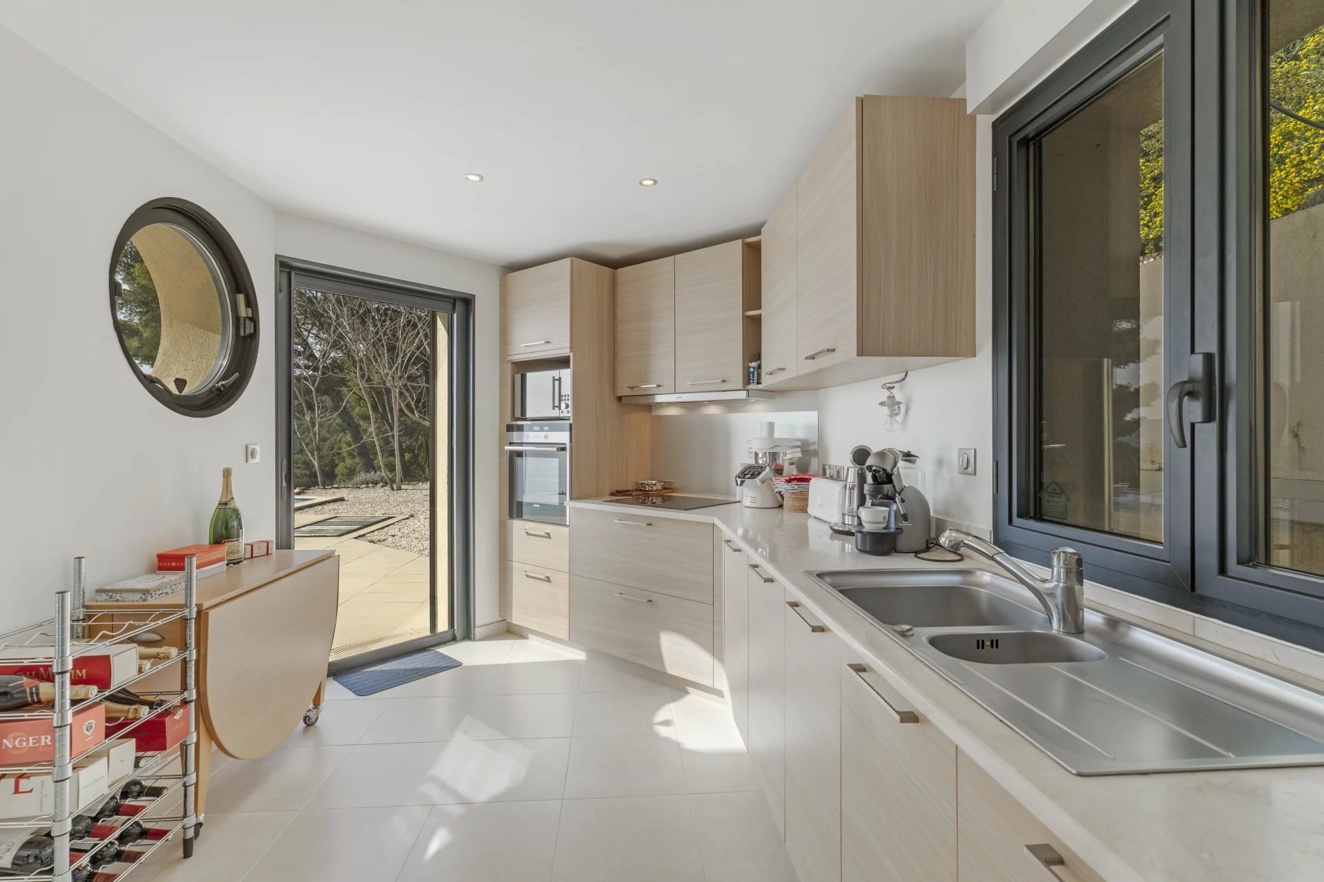 In the heart of the highly sought-after private estate of La Californie, this elegant contemporary villa of approximately 250 sqm enjoys spectacular sea views stretching from the Bay of Carqueiranne to the Giens Peninsula.
