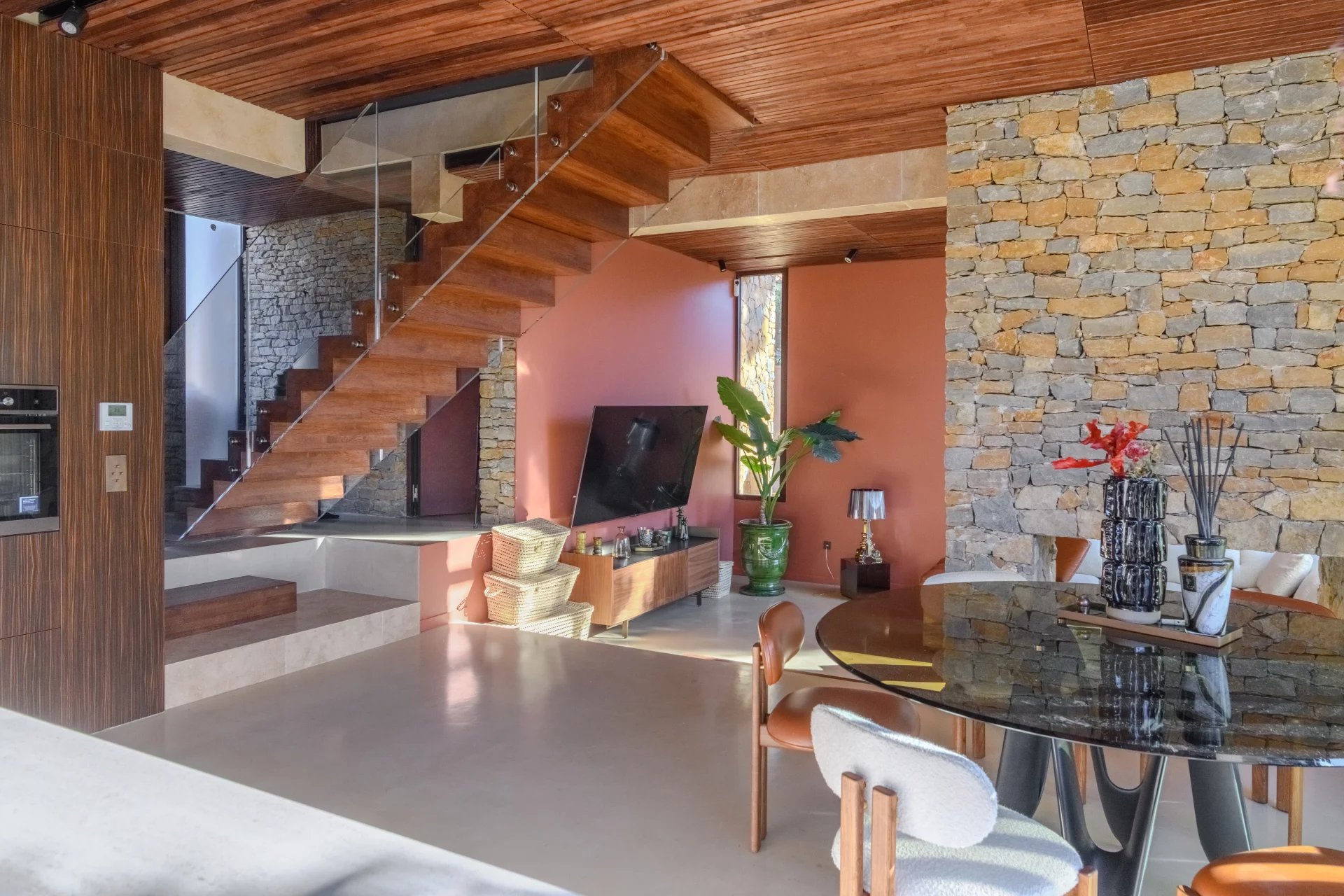 Designed on split levels, the property offers a harmonious flow with both open volumes and distinct, well-defined living areas.