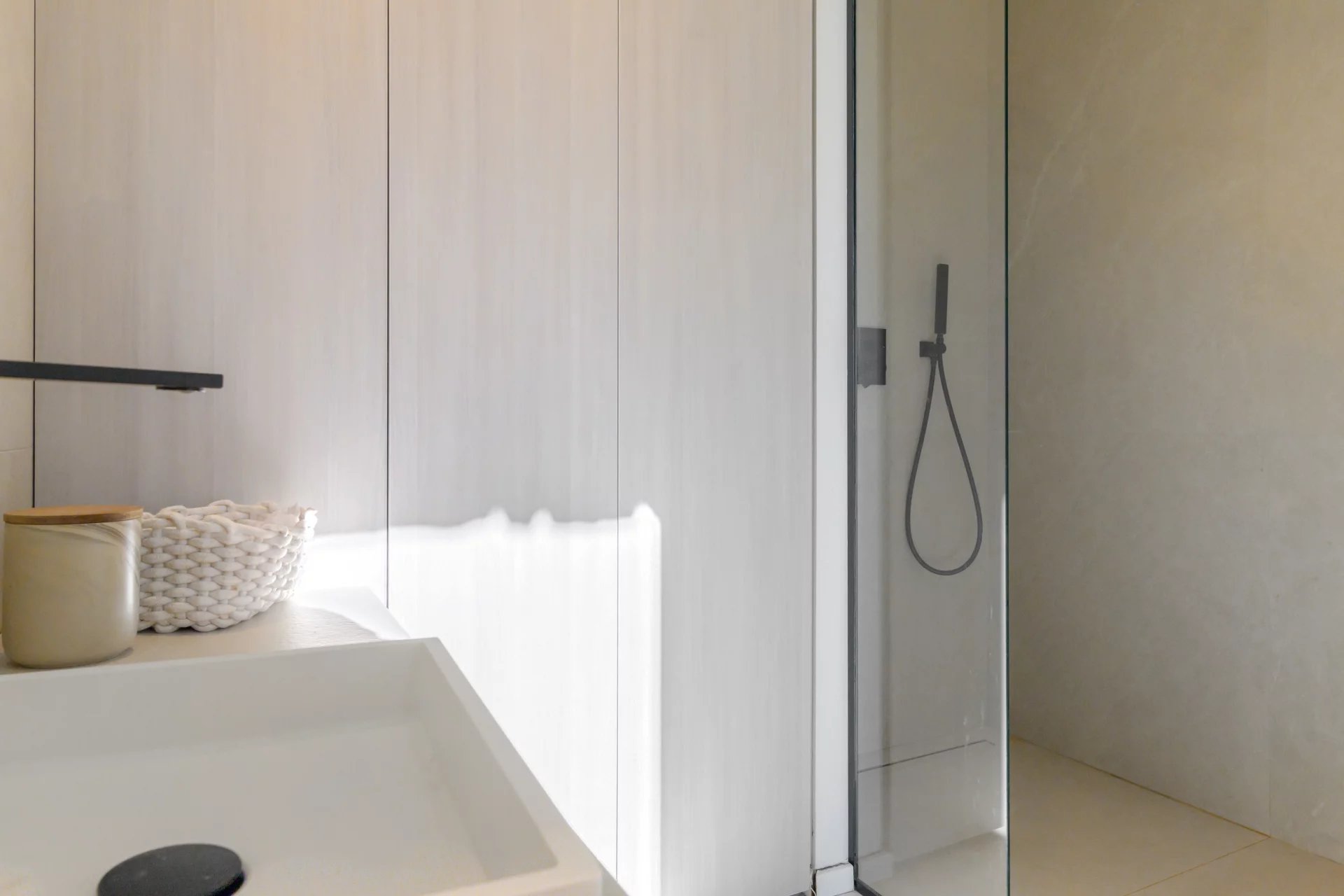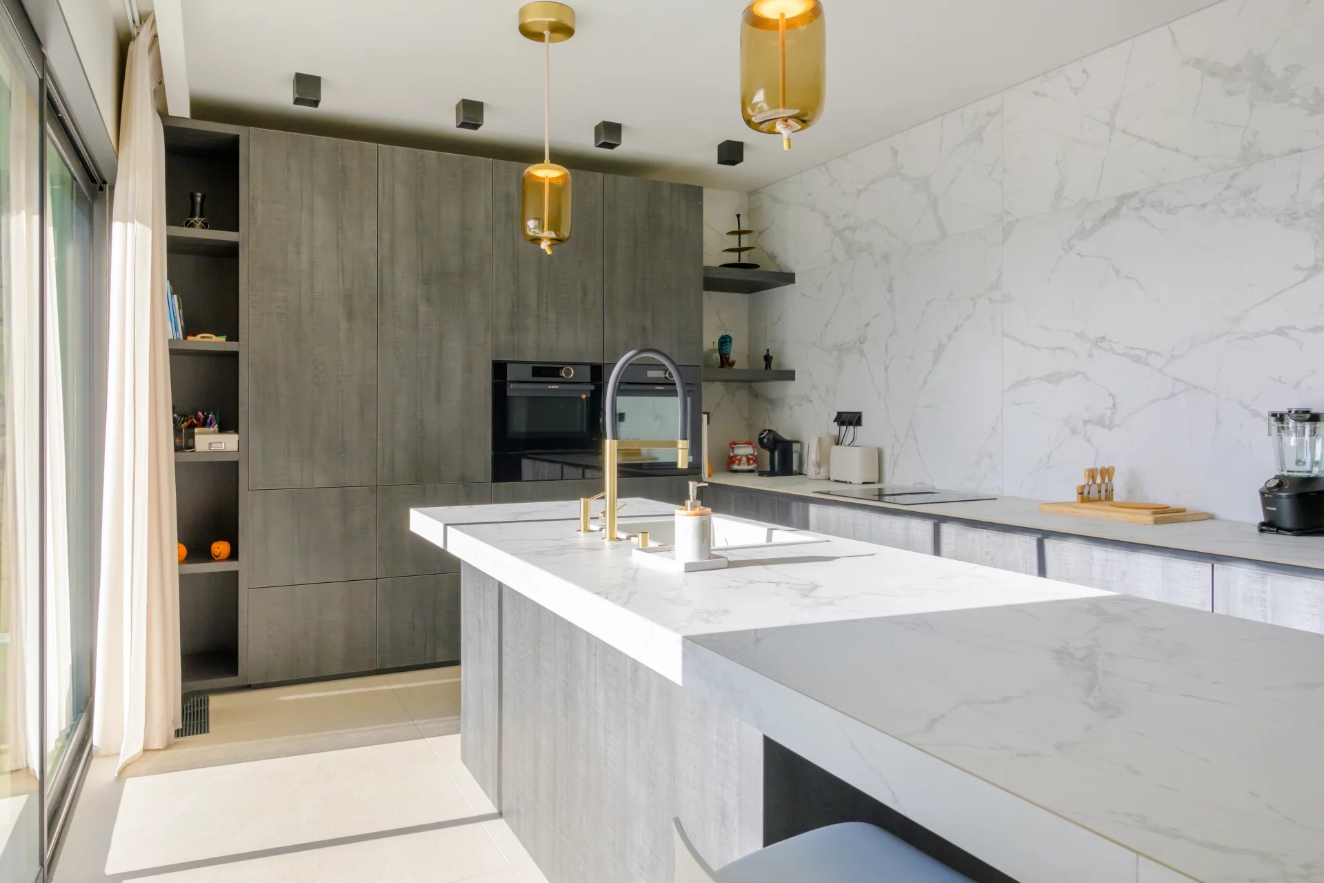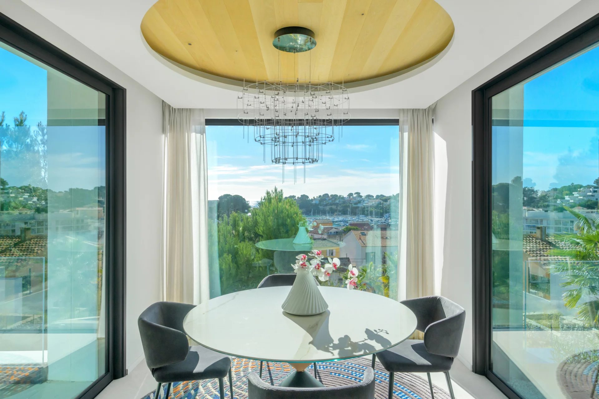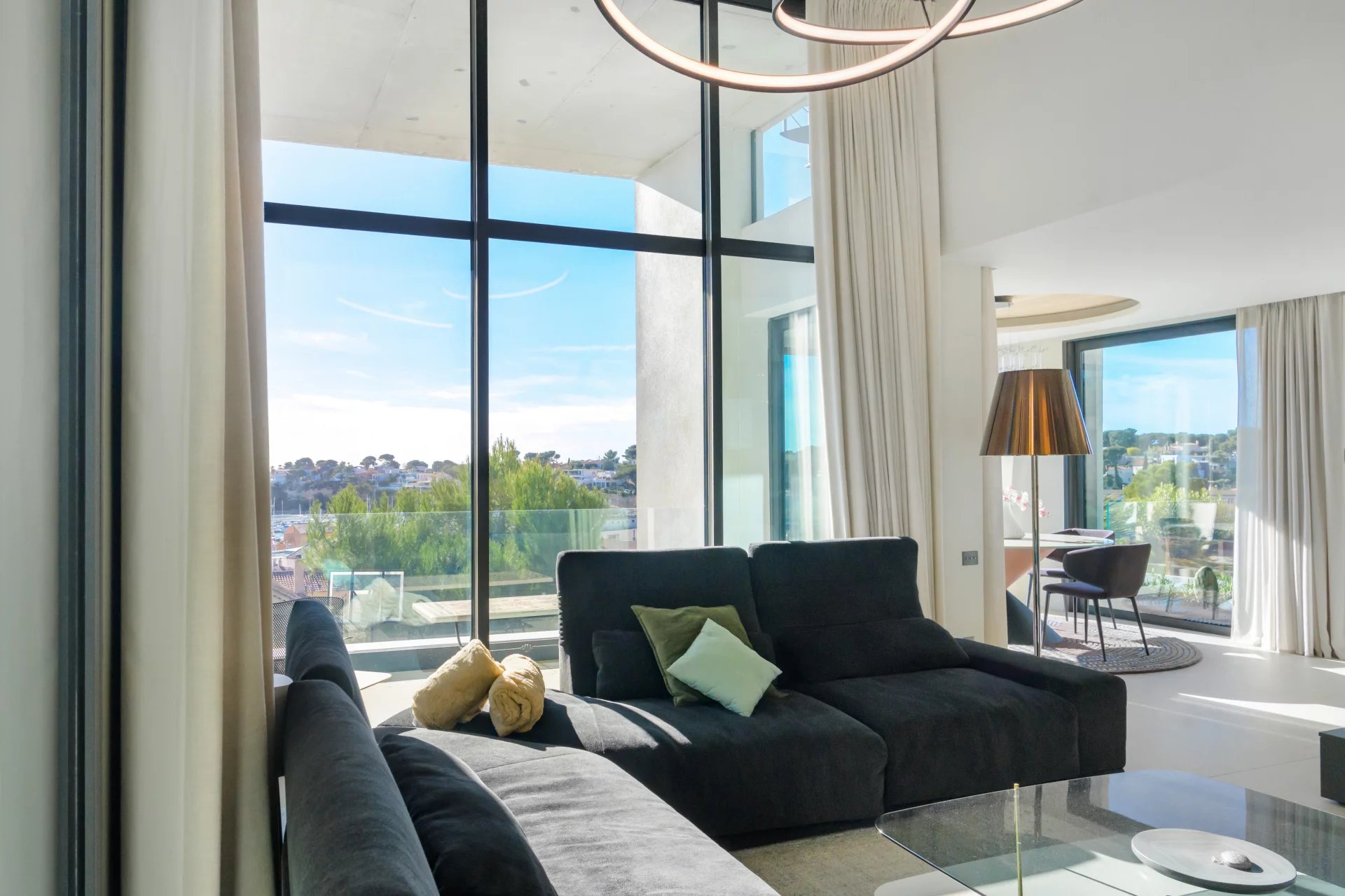 Once inside this stunning family home you are welcomed by a majestic entrance hall featuring a glass elevator shaft. This level includes a private office with a porthole overlooking the pool, a fully equipped gym with a dedicated spa area featuring a jacuzzi, sauna, and shower, a state-of-the-art home cinema with a retractable screen and large TV, a games room, and a spacious 50 m2 garage.