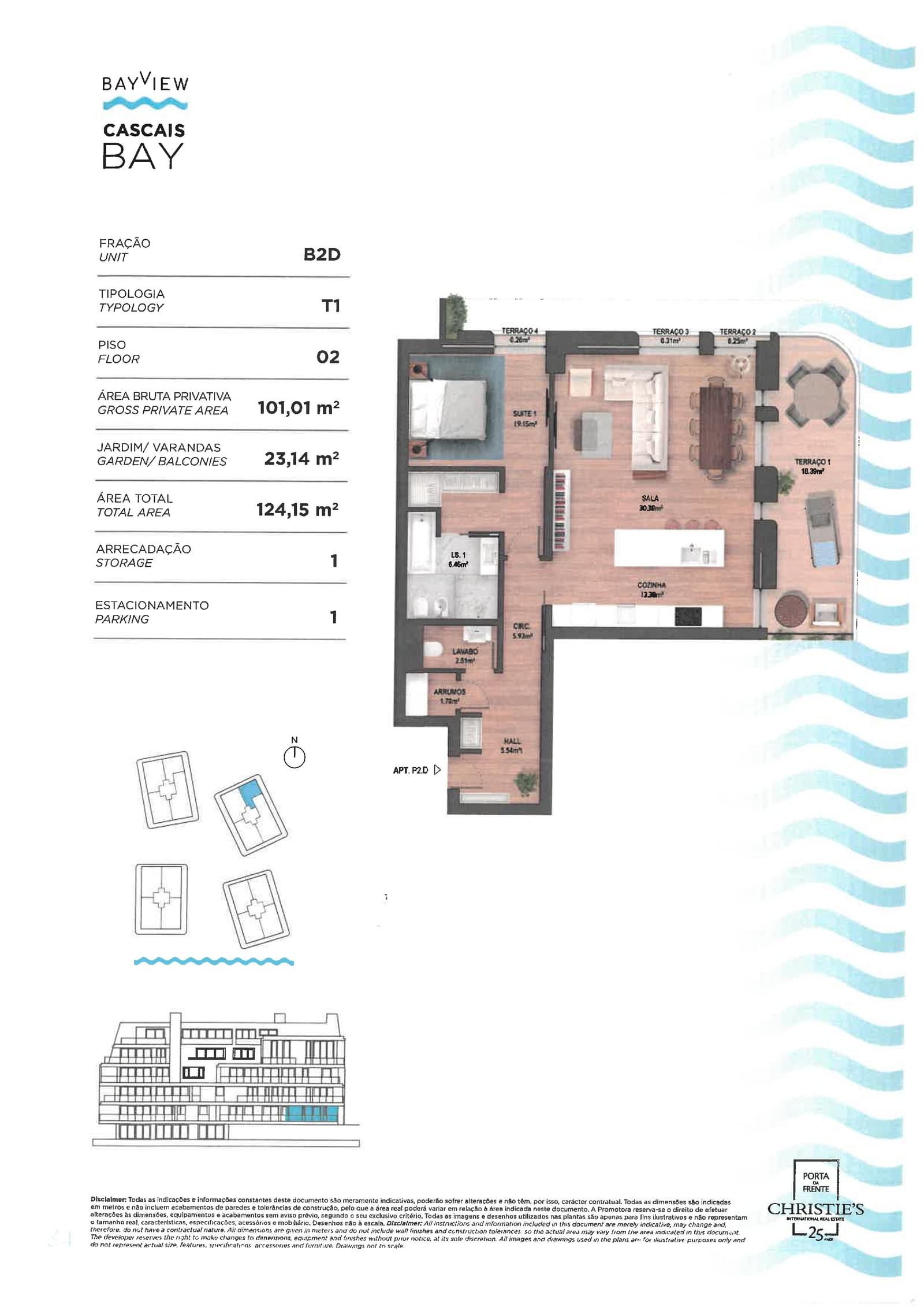 Experience refined coastal living in this elegant 1-bedroom apartment with a total area of 124.15 sqm, located in the prestigious Cascais Bay – a new landmark of luxury at the entrance of Cascais. Offering 101.01 sqm of gross private area and 23.14 sqm of balconies, this unit features a spacious living room with open-plan kitchen, a bright en-suite bedroom, and premium finishes. Storage room and parking space included.