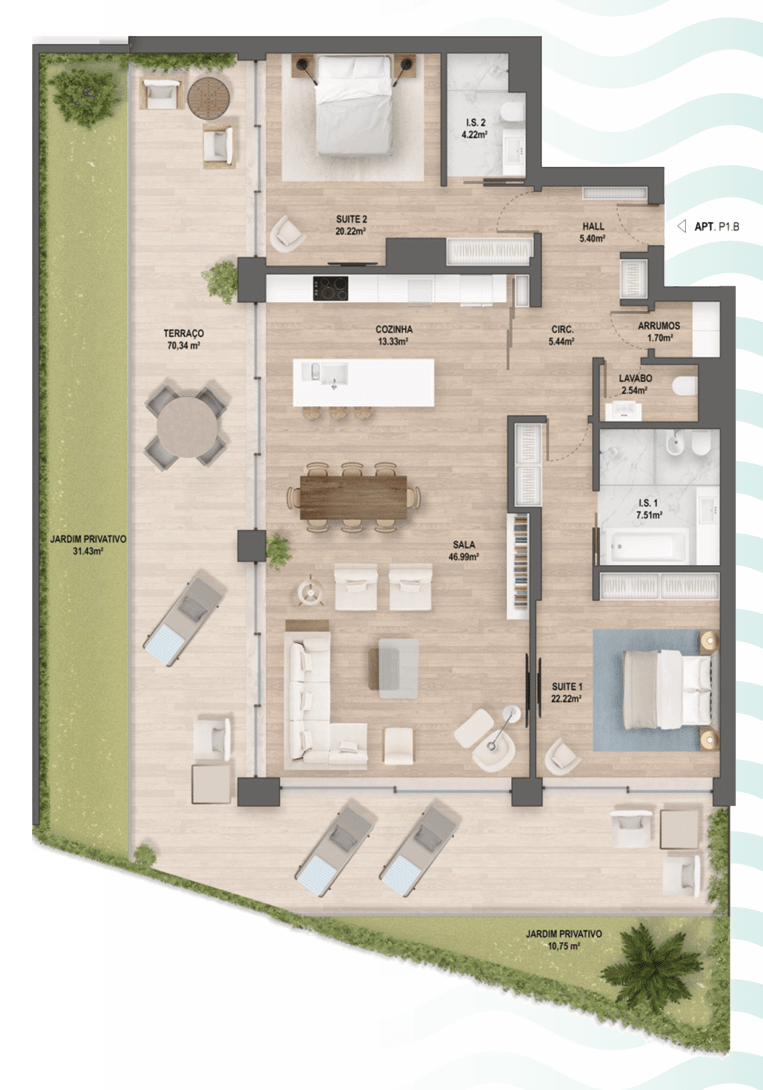 In any of the interior spaces of Cascais Bay, exclusivity and prestige guide each apartment. With types ranging from Studio to 4 bedroom duplex with private pool and areas between 48 sqm and 296 sqm, each unit has functionally different areas. A house tailored to your needs for a day full of unforgettable memories. The condominium, on the other hand, has garages, storage rooms, a fitness center and 24 hour security.