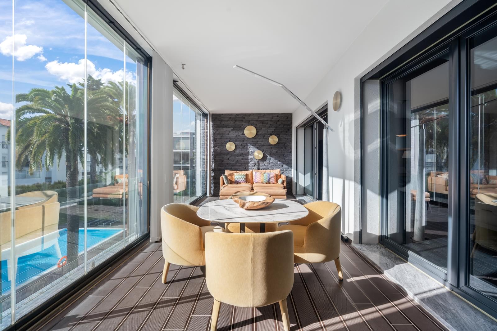 The social area is enhanced by a closed terrace adjacent to the living room — perfect for entertaining — with a privileged view over the condominium’s gardens and swimming pool. The bedrooms feature two enclosed balconies that provide natural light and versatile use.