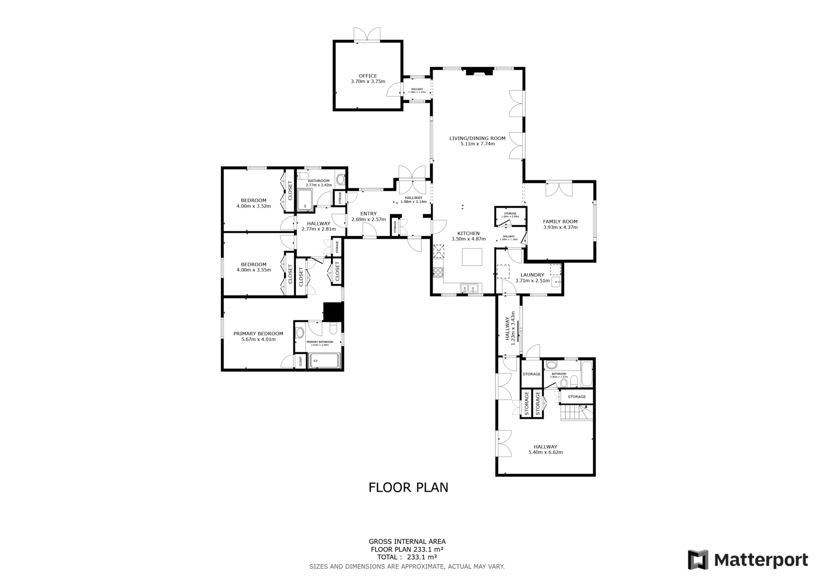 The layout is very functional, with the entrance hall separating the social area from the private area.