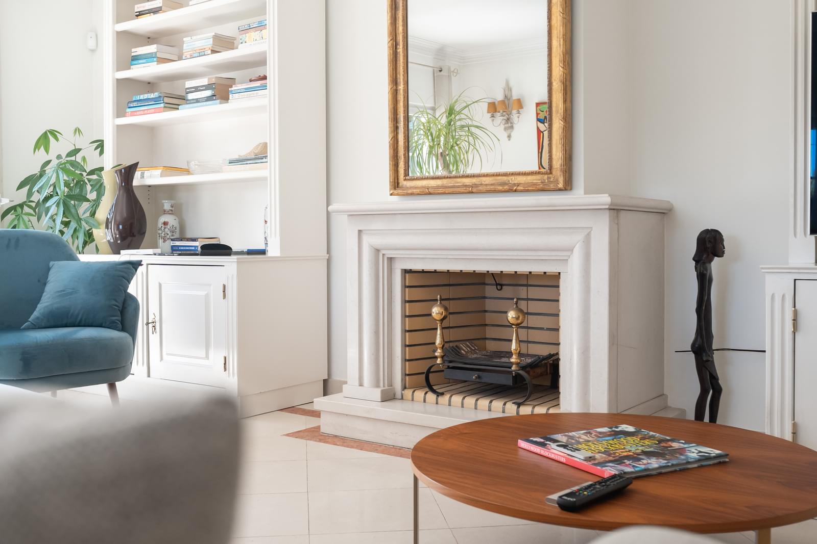 – Living and dining room with fireplace, opening onto a private terrace with direct access to the shared garden and swimming pools