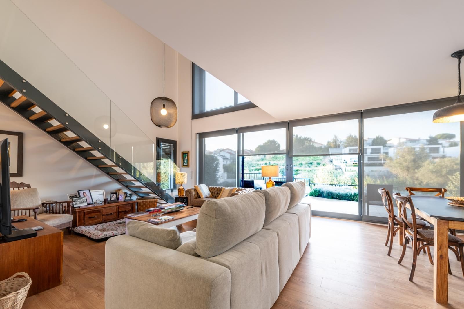 The property also includes two exterior storage areas of 3 sqm each and private parking for two cars with electric gates. It is equipped with air conditioning in all rooms, triple-glazed windows, electric blinds with blackout system, a security alarm on windows and doors, and natural wood flooring. All bedrooms have built-in wardrobes.