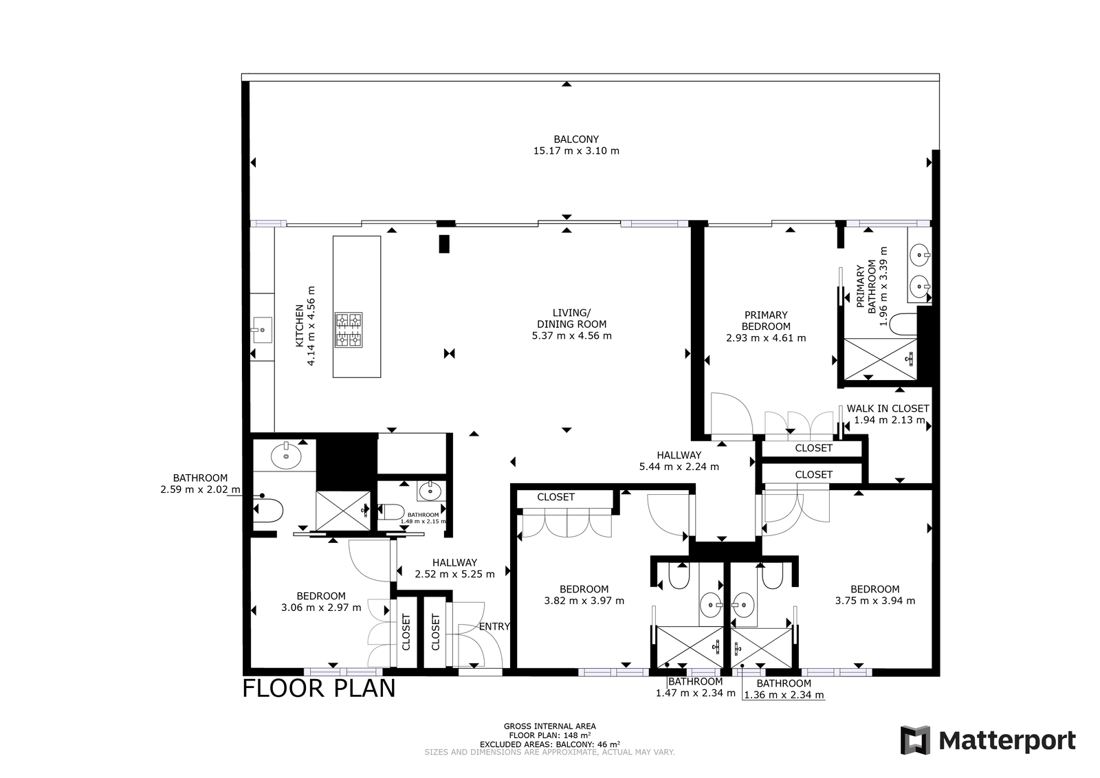 – A fully equipped 14 sqm kitchen in open-plan to the living room