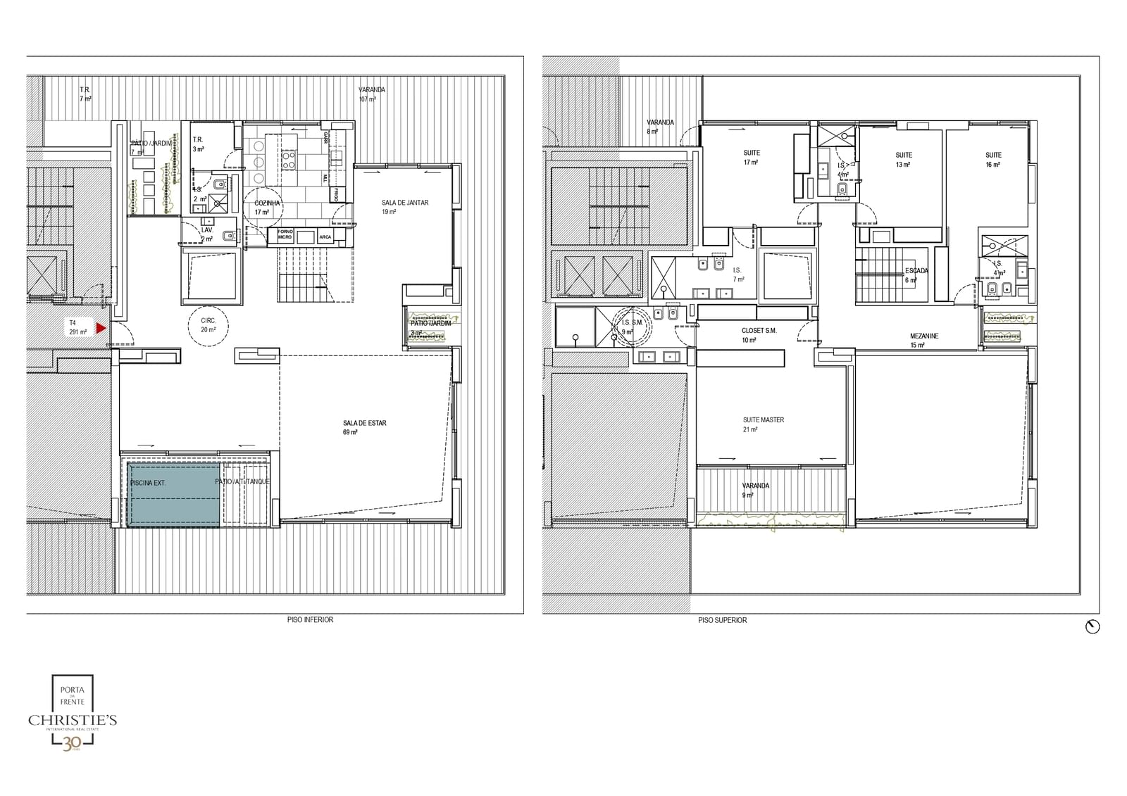 • Living room: 69 m², with access to a 107 m² terrace