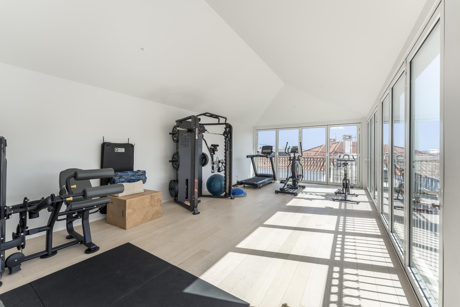 The apartment is equipped with radiant floor heating in the bathrooms, air conditioning, solar panels and a 500-liter heat pump, including also four parking spaces in the garage.