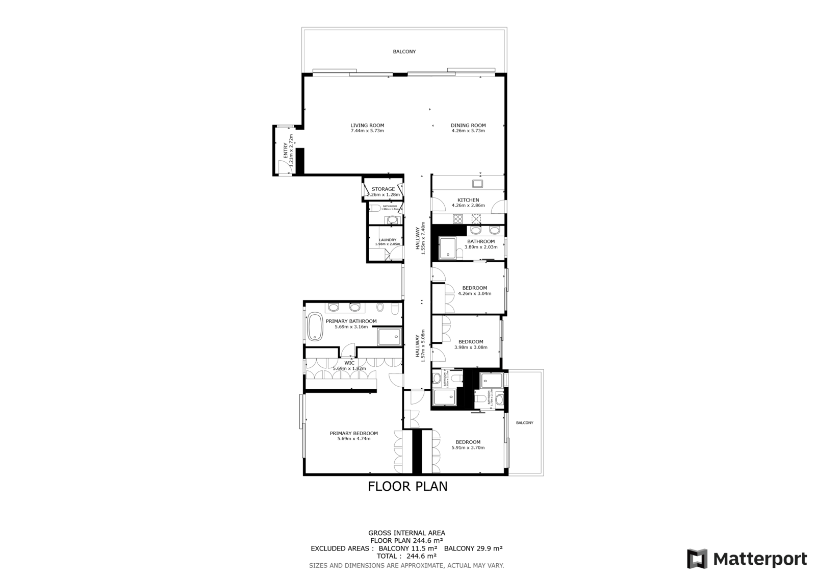 A hallway leads to the private area, passing by the laundry area, pantry and social bathroom.