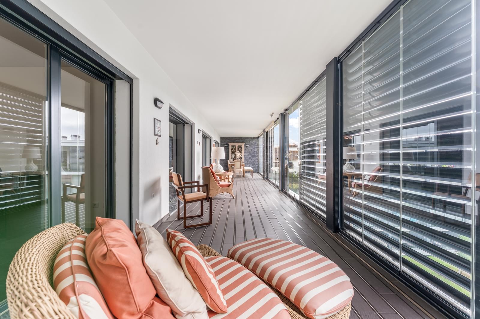 The social area is bright and generous, with a living room divided into two distinct areas – lounge and dining – perfect for entertaining. The kitchen is modern, fully equipped, and functional, ideal for everyday living. The apartment features two complete suites and two additional bedrooms supported by a bathroom, ensuring privacy and versatility for the whole family. The spacious terraces, accessible from every part of the apartment and with excellent sun exposure, are perfect for enjoying outdoor moments.