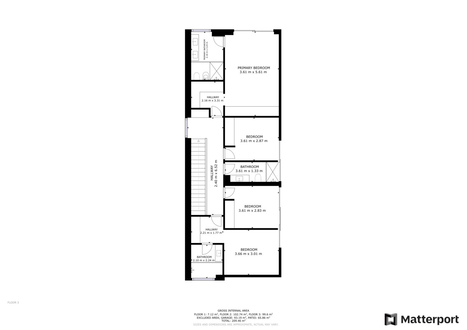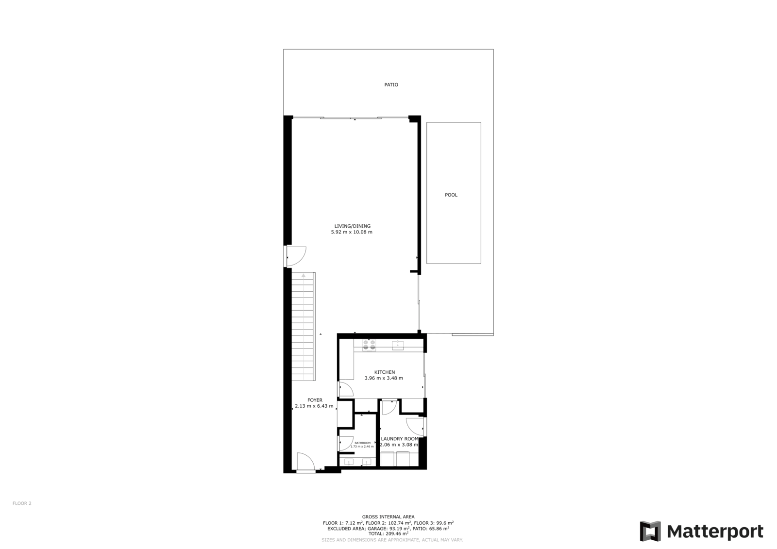 With a 222 sqm Private Gross Area and a 503 sqm plot of land, with a swimming pool, the villa is composed by three floors, distributed as follows: