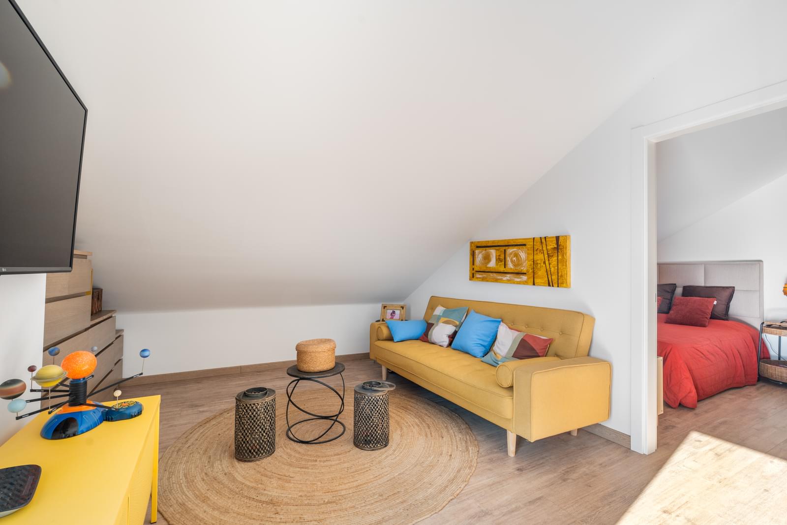 On the top floor, an attic with bathroom, lounge and an interior bedroom – easily convertible into a suite or media room – also benefits from a private terrace with sea views.