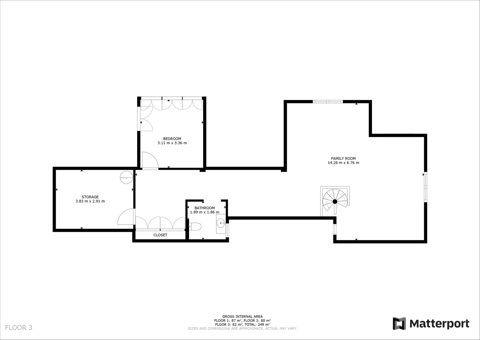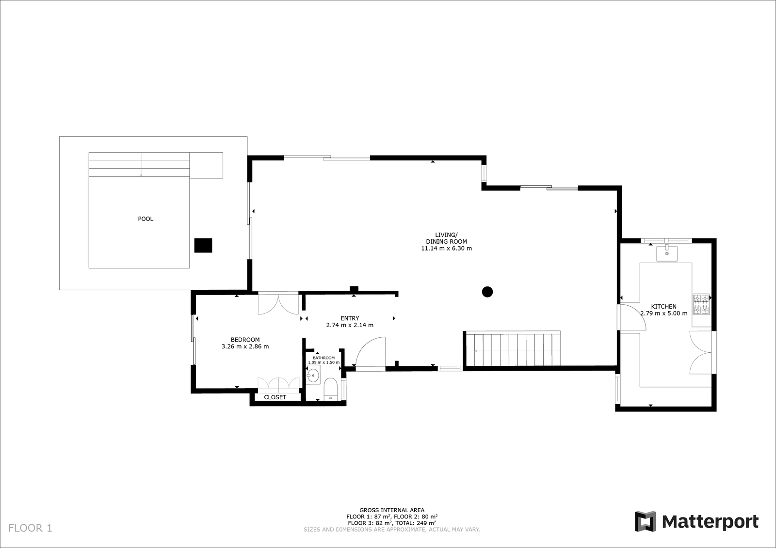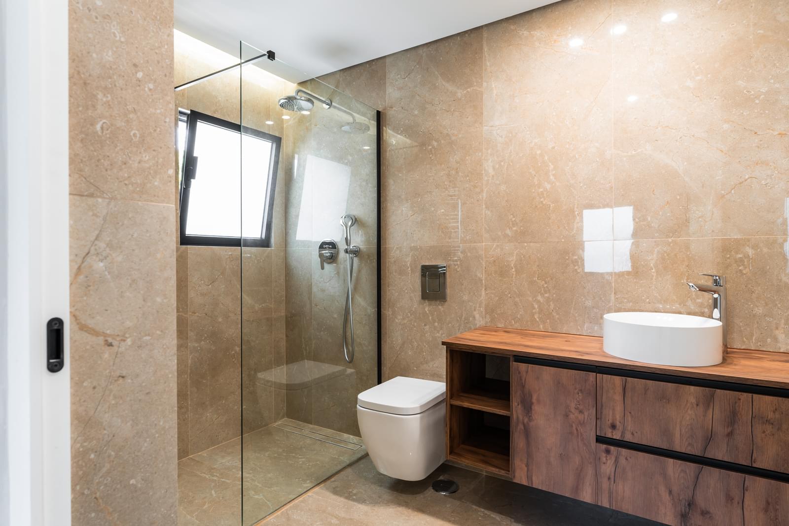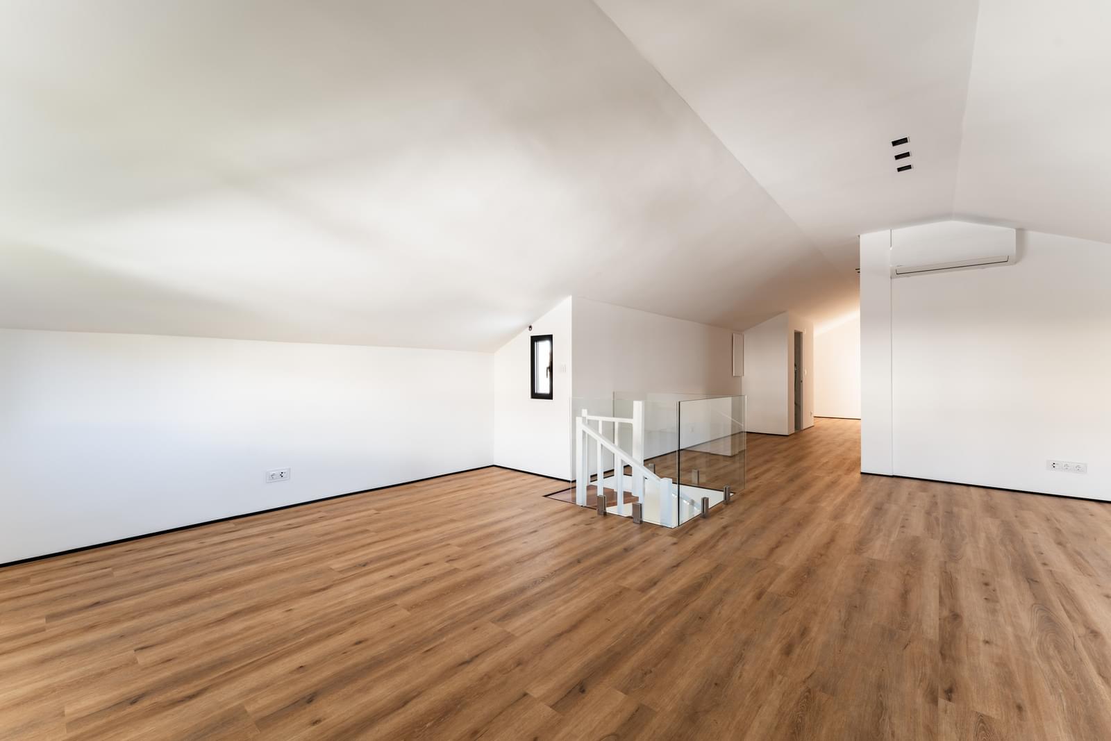 With a 203 sqm gross private area, distributed over three floors and with garage, the villa is composed by: