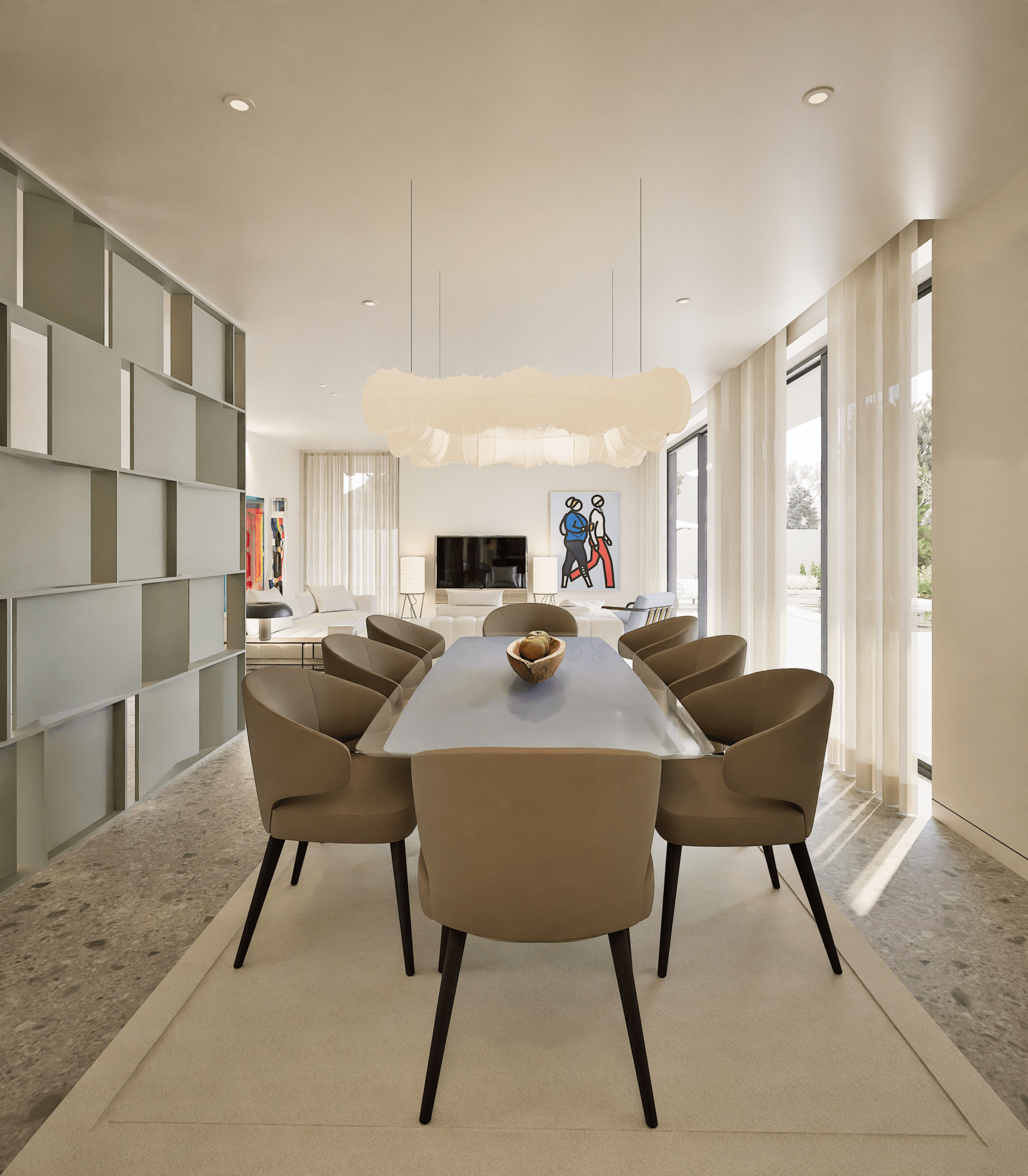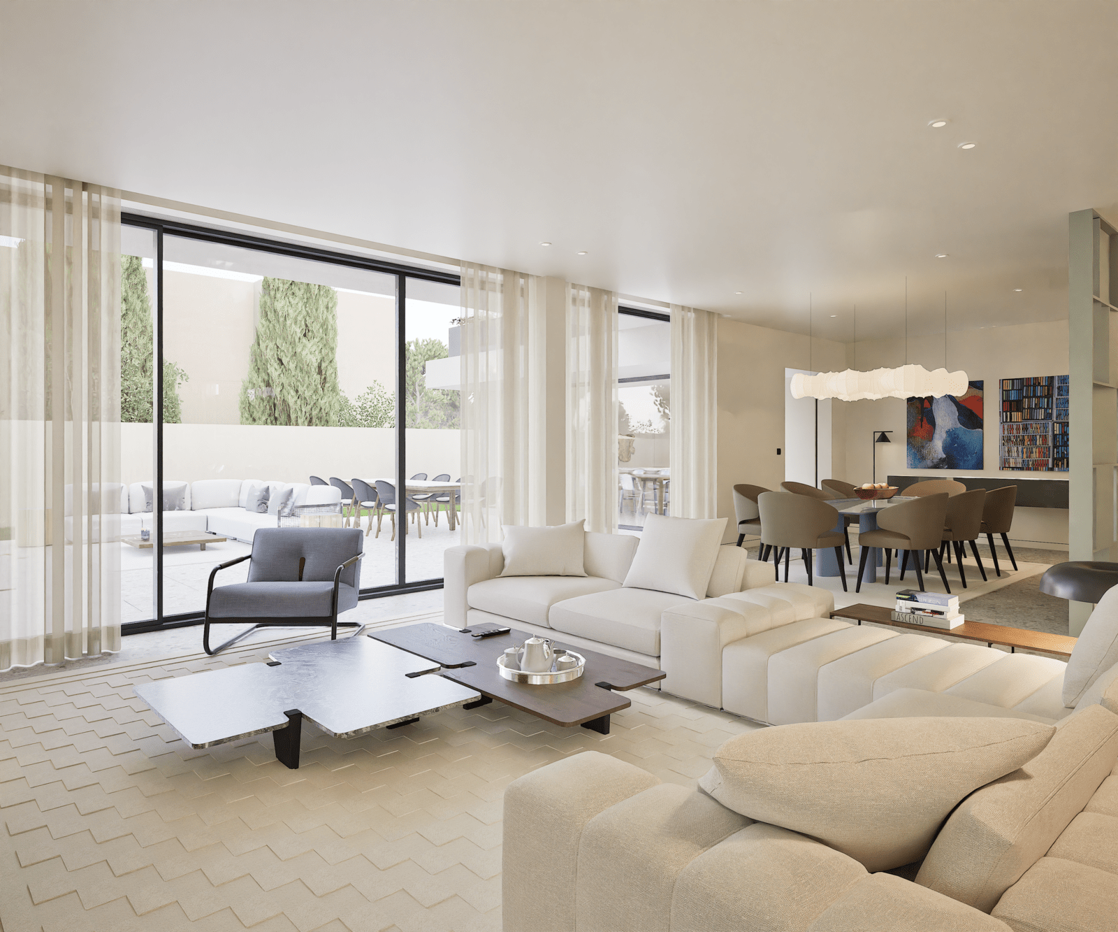 * Living room with 67 m² — bright, spacious, and with direct access to the garden and swimming pool.