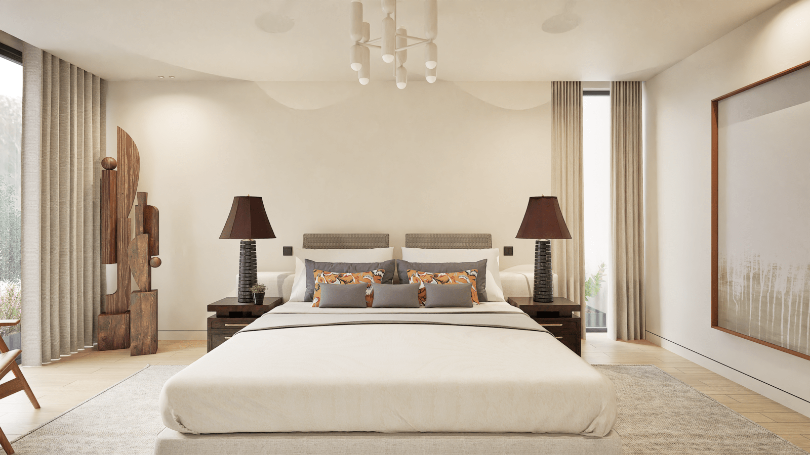 * Five suites ranging from 16 to 34 m², all with private bathrooms. The Master Suite, with 32 m², includes a walk-in closet and an exclusive atmosphere.