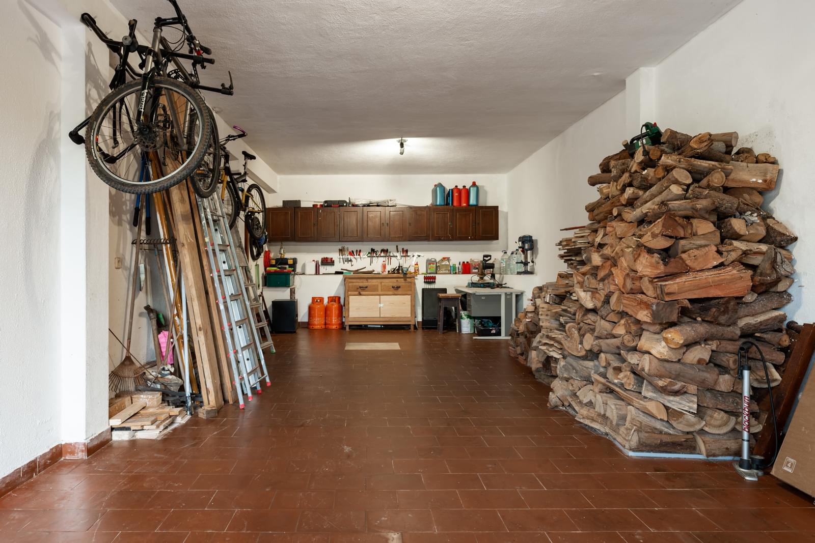 On the ground floor, the property has a spacious living room that has been converted into an office, a comfortable guest bedroom, a practical bathroom, an additional large living room measuring 45 m², a large storage room, a garage with capacity for two cars and a charming garden.