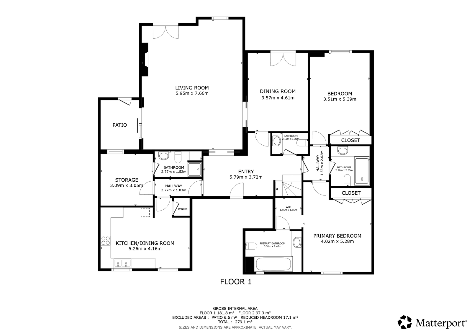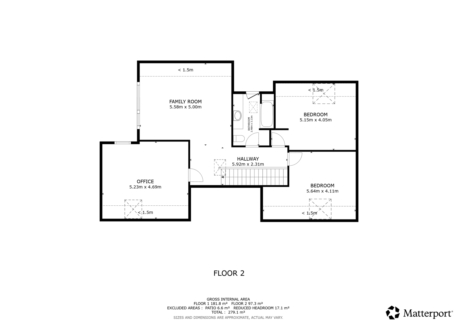 Three bedrooms (18.8 sqm, 19.2 sqm, and 18.7 sqm), the last being ideal as an office;