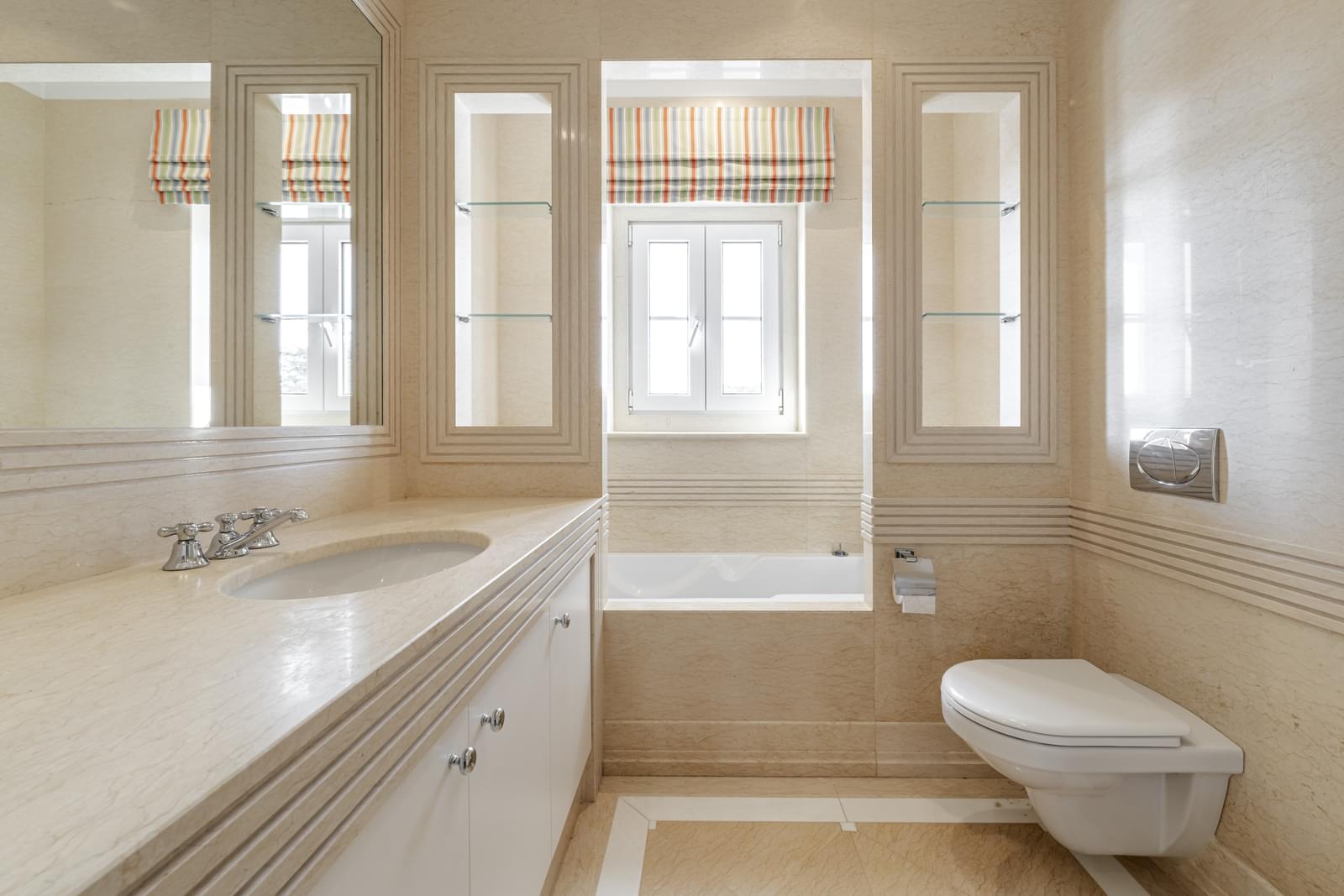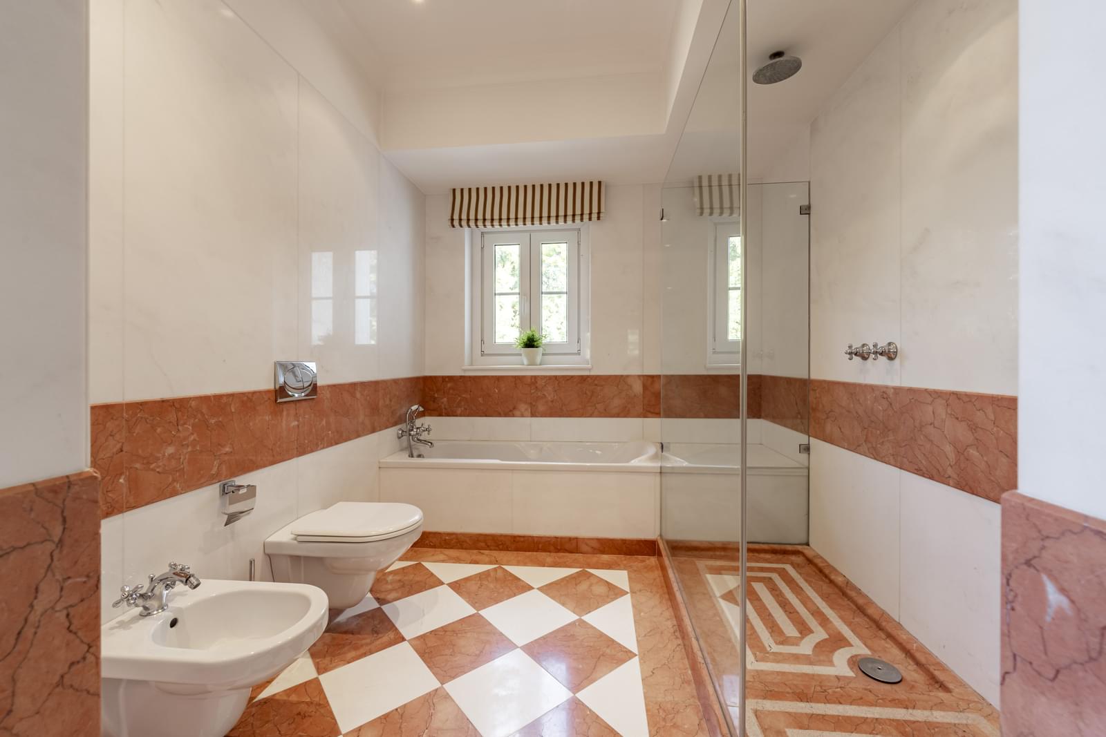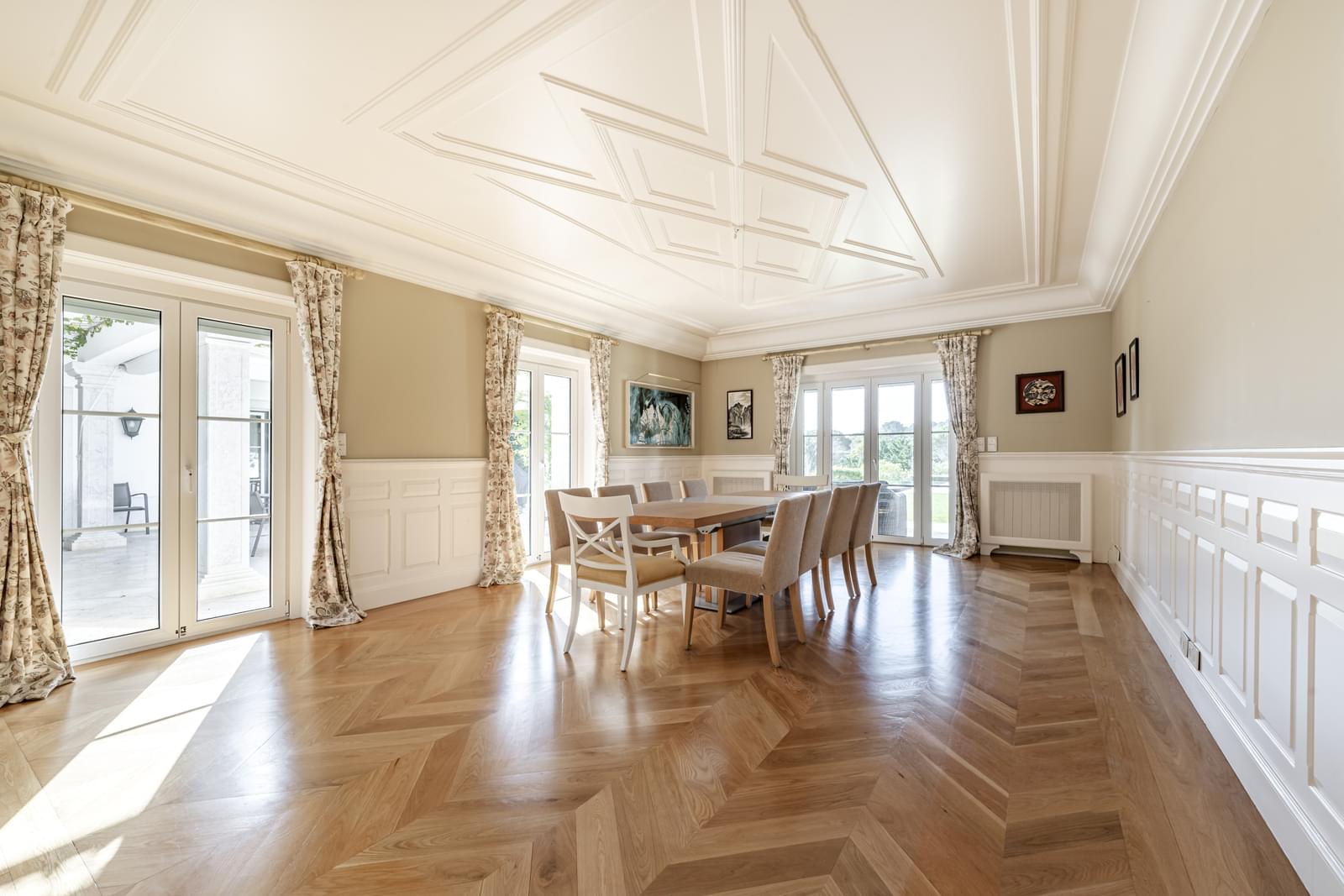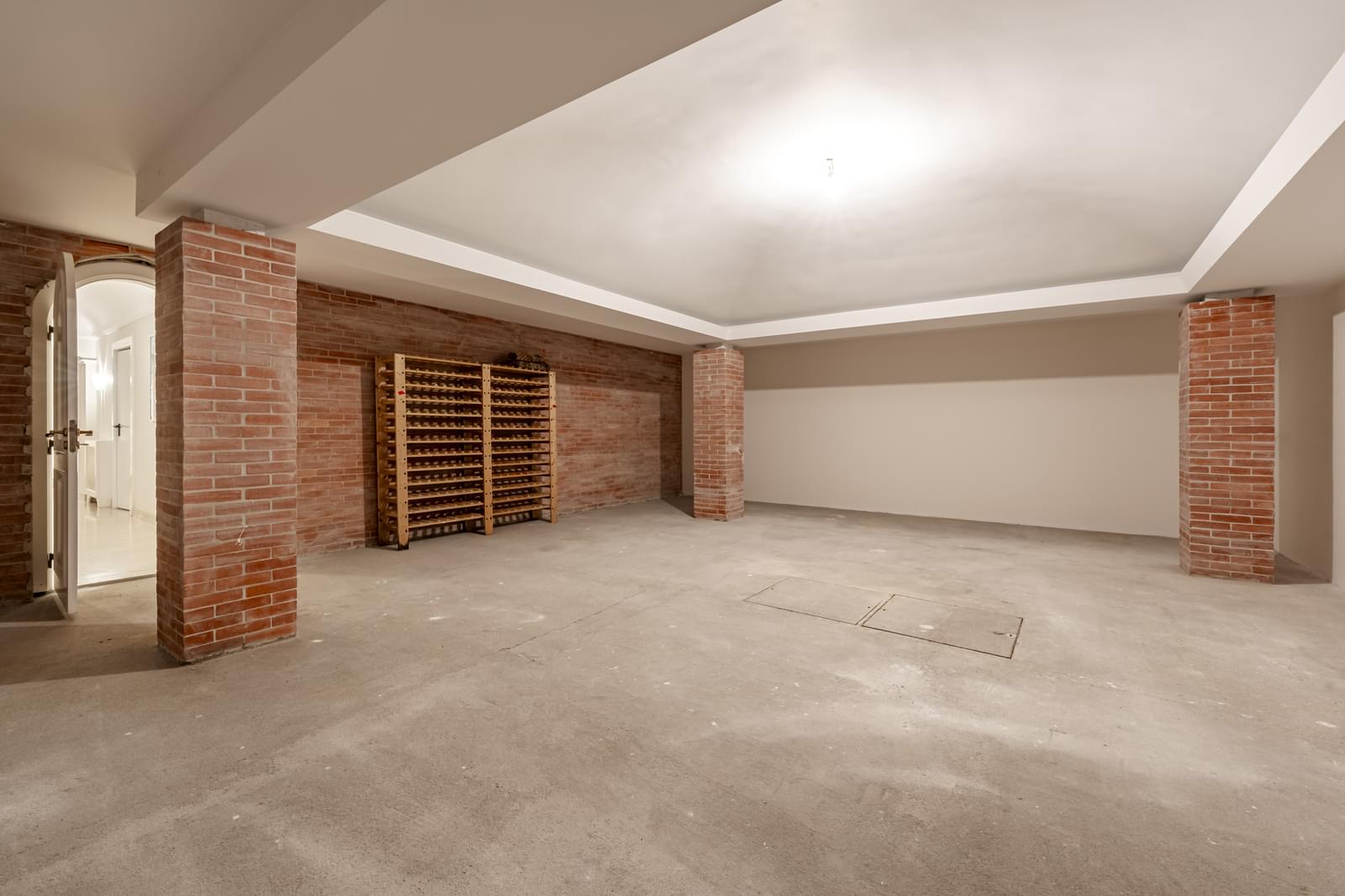 In the basement, leisure and well-being are priorities. An ample games´ room invites entertainment, while the sophisticated 70 sqm wine cellar is a true retreat for wine lovers. For moments of relaxation, the villa features a Swedish sauna and a Turkish bath. This level also includes a functional laundry area, staff accommodation and a spacious garage with capacity for up to five vehicles.