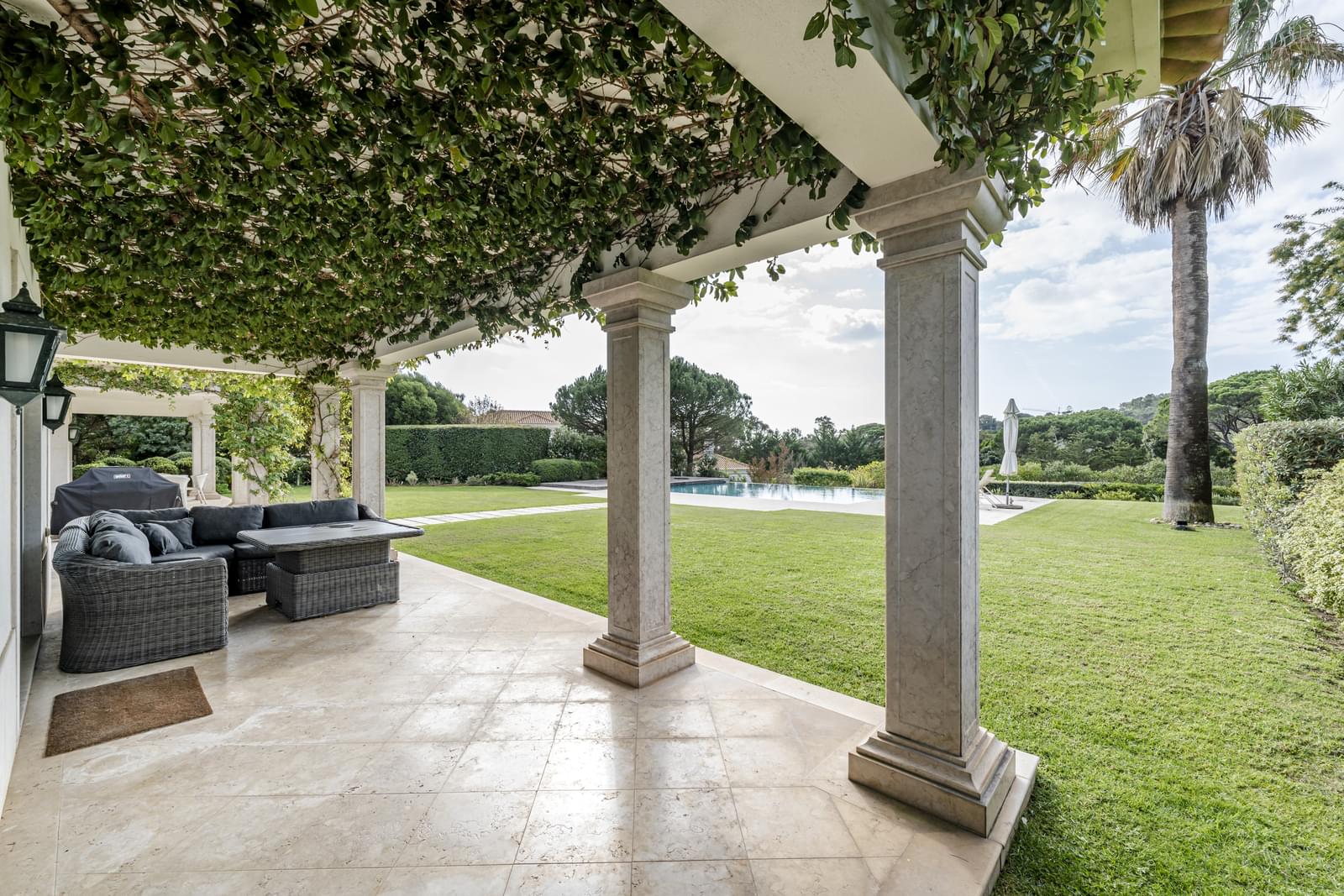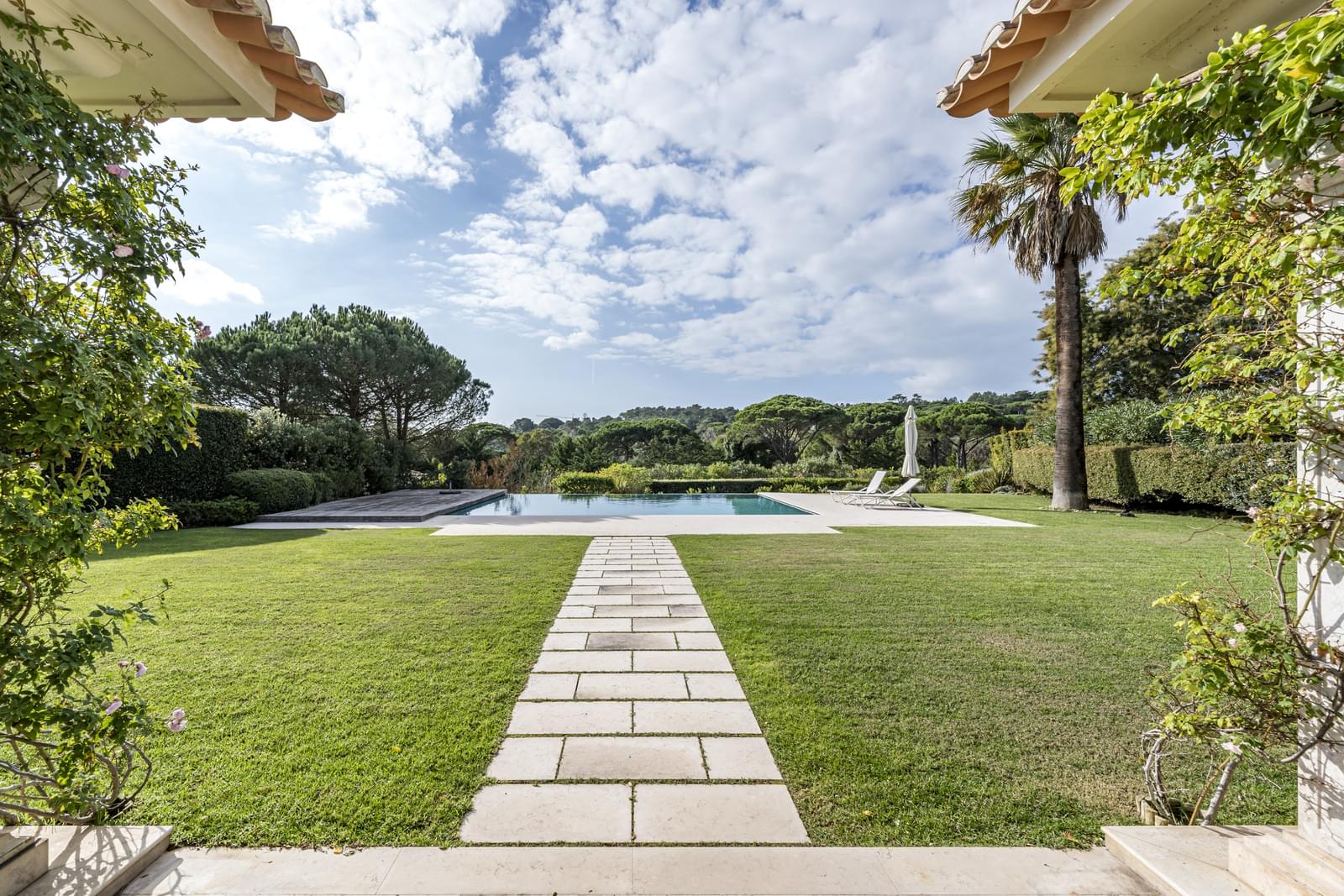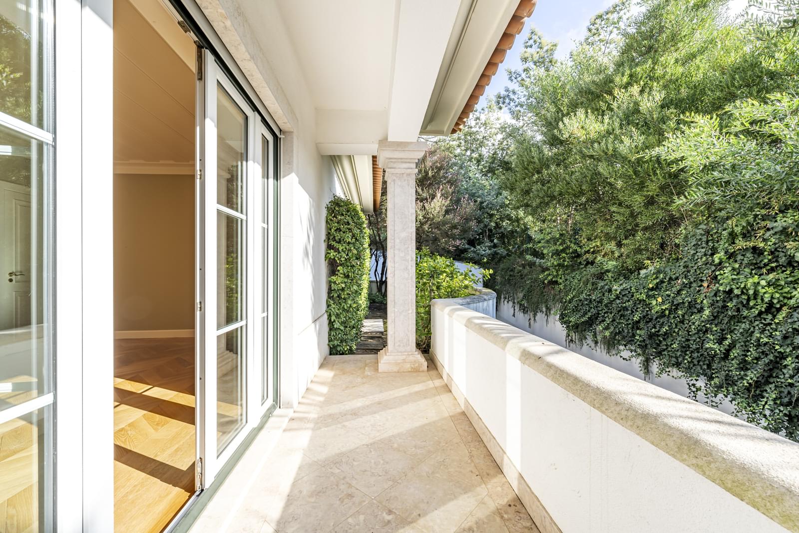 The lush gardens, meticulously maintained, provide an environment of rare beauty. The ample heated swimming pool, covered with exquisite Bizassa tiles, perfectly harmonizes with the expansive terraces, offering spectacular views of the verdant landscaping of the property.