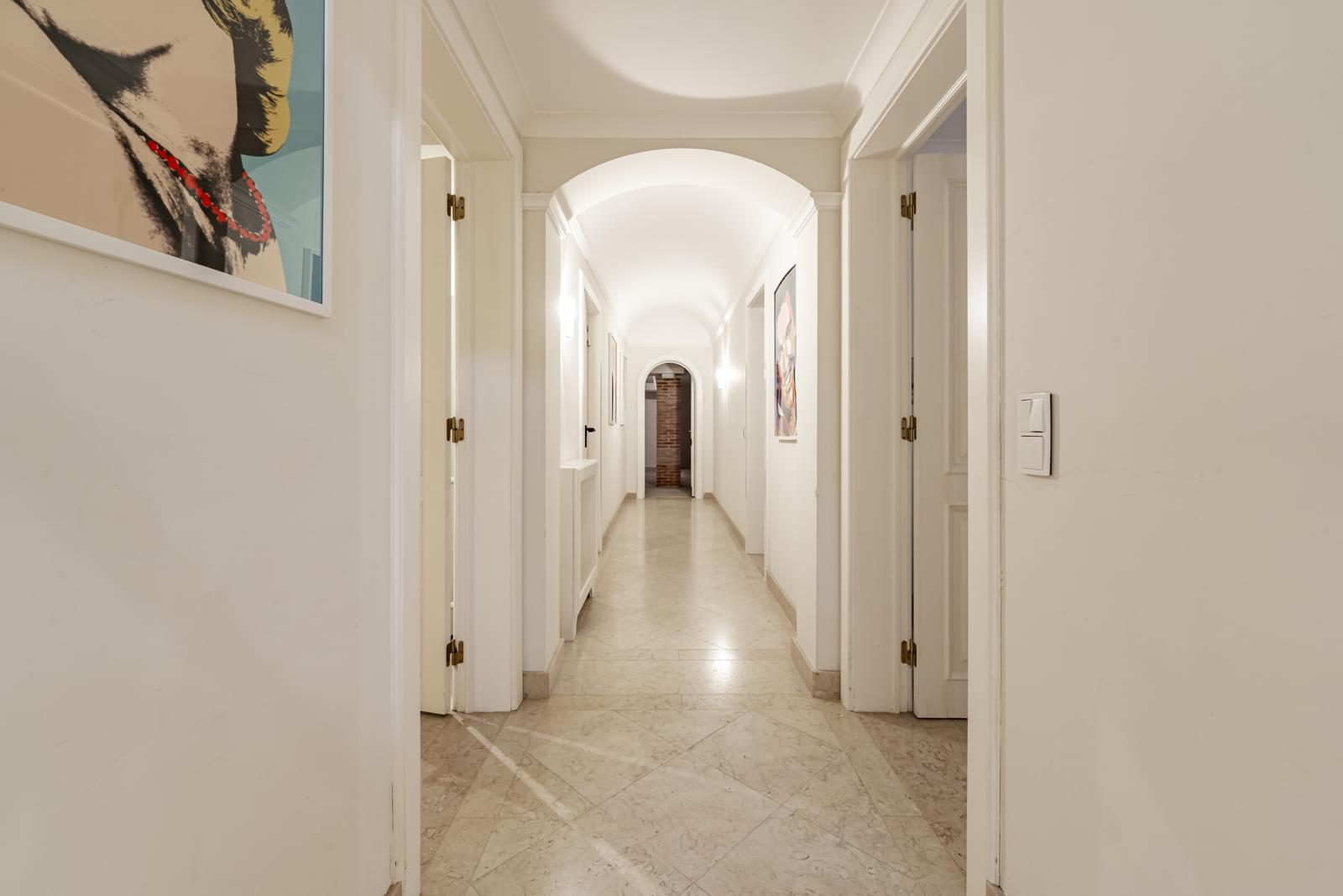 The kitchen, spacious and bathed in natural light, is a true invitation to gastronomy, equipped with high-end household appliances from the prestigious brands Gaggenau and La Cornue. Additionally, it features a functional scullery, perfect for more casual meals.