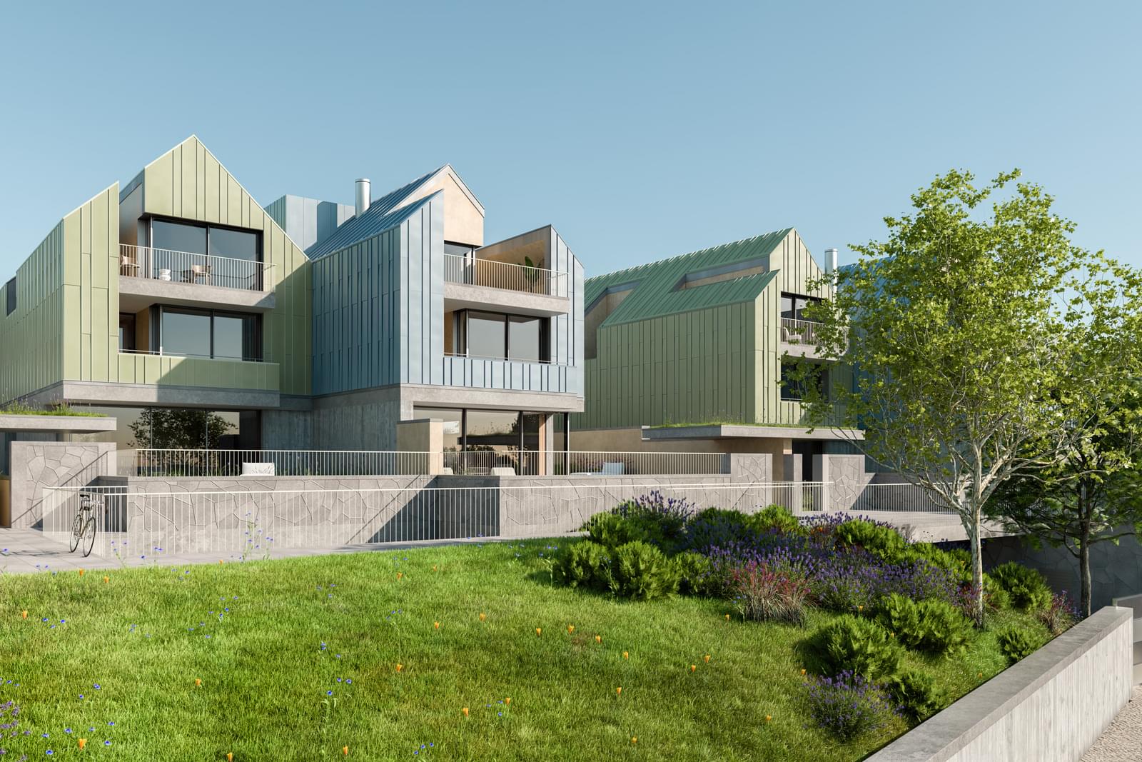 6 villas with private pool and garden with T4 typologies with private areas between 352 and 365 sqm • 4 T3 apartments • Common area with gym and condominium room • Underground parking