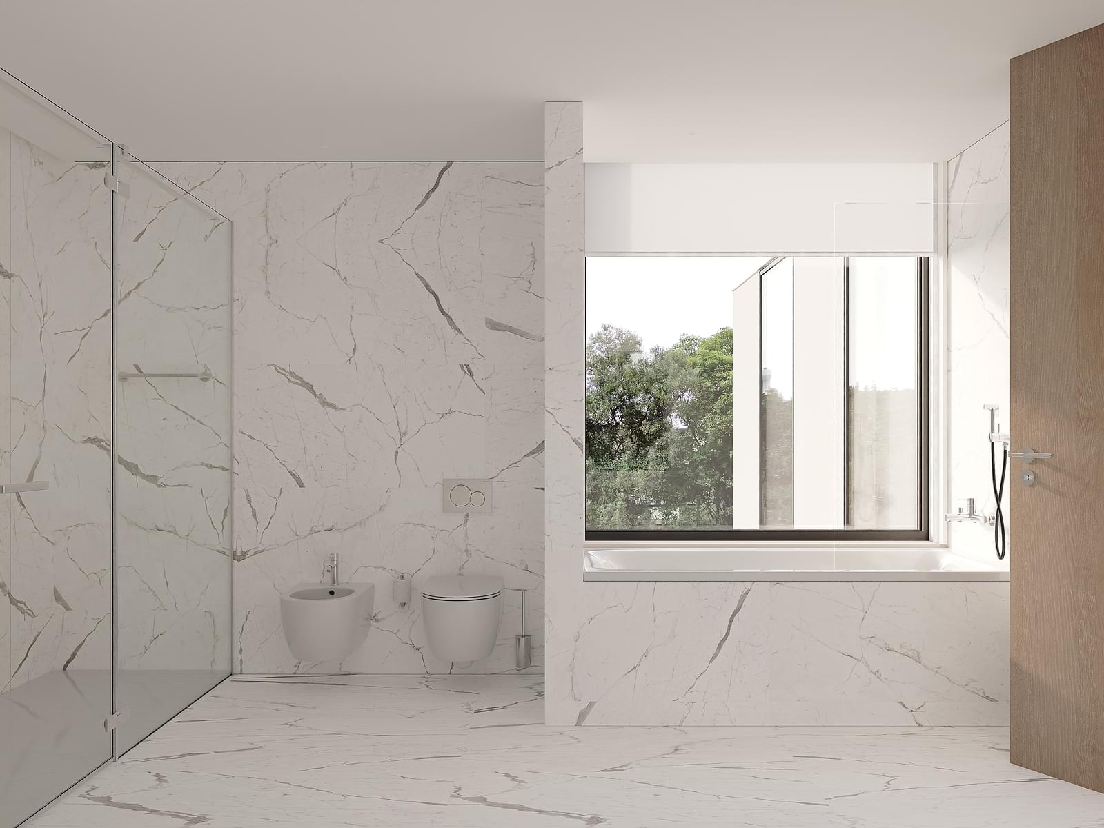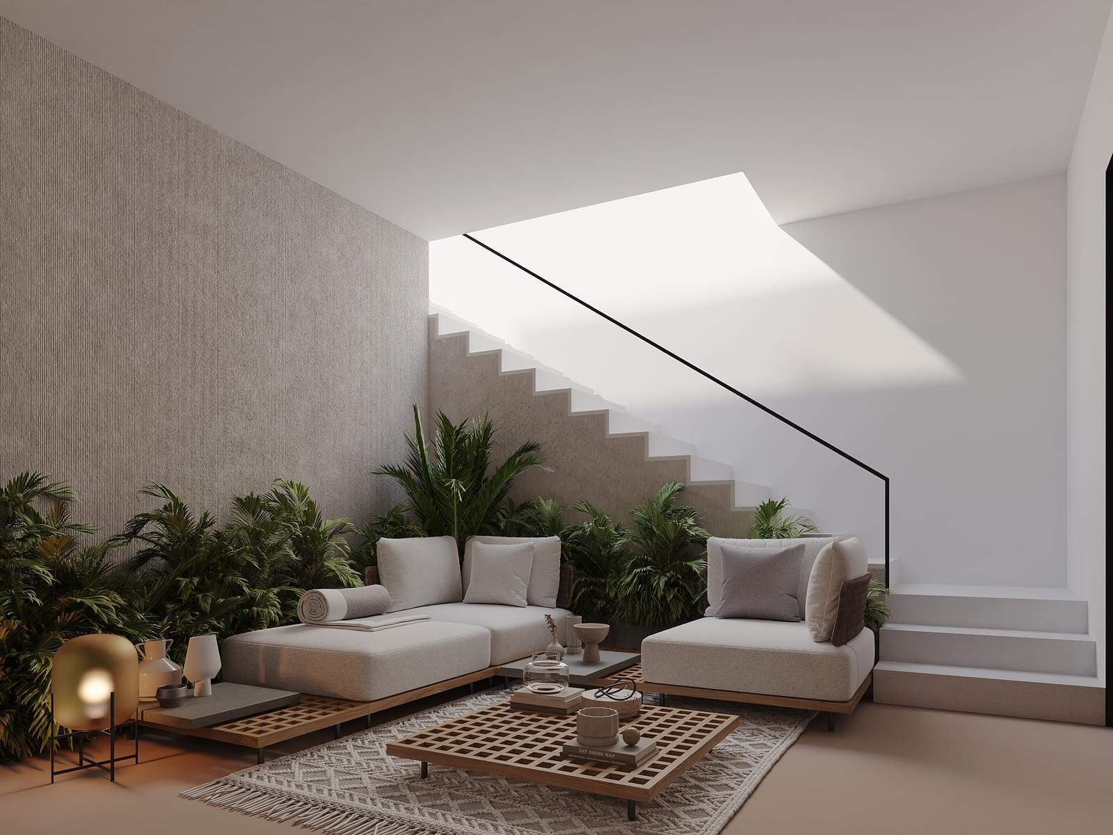 With an excellent sun exposure, the villas receive abundant natural light throughout the day, creating welcoming and bright environments. In addition, the modern architecture project is complemented by a particular landscape design, with large dimensioned green spaces that promote a sense of tranquillity and well-being.