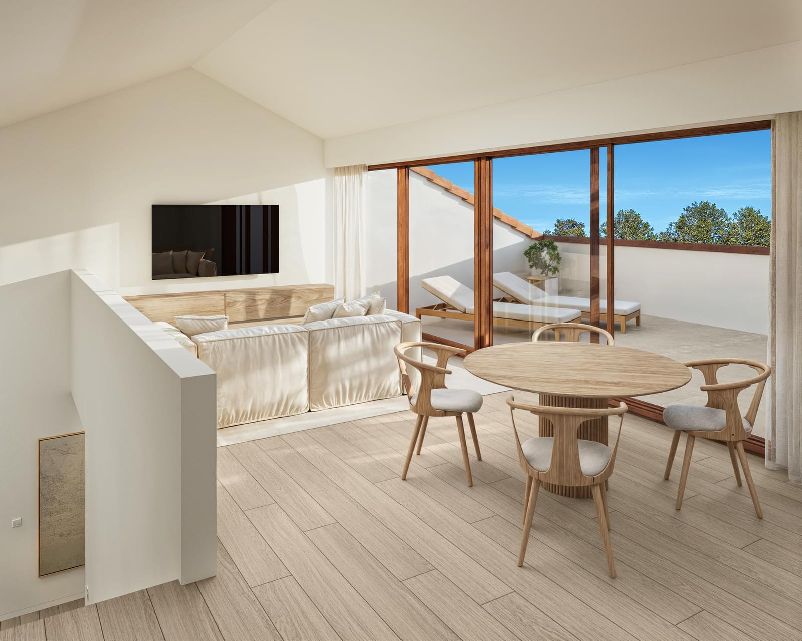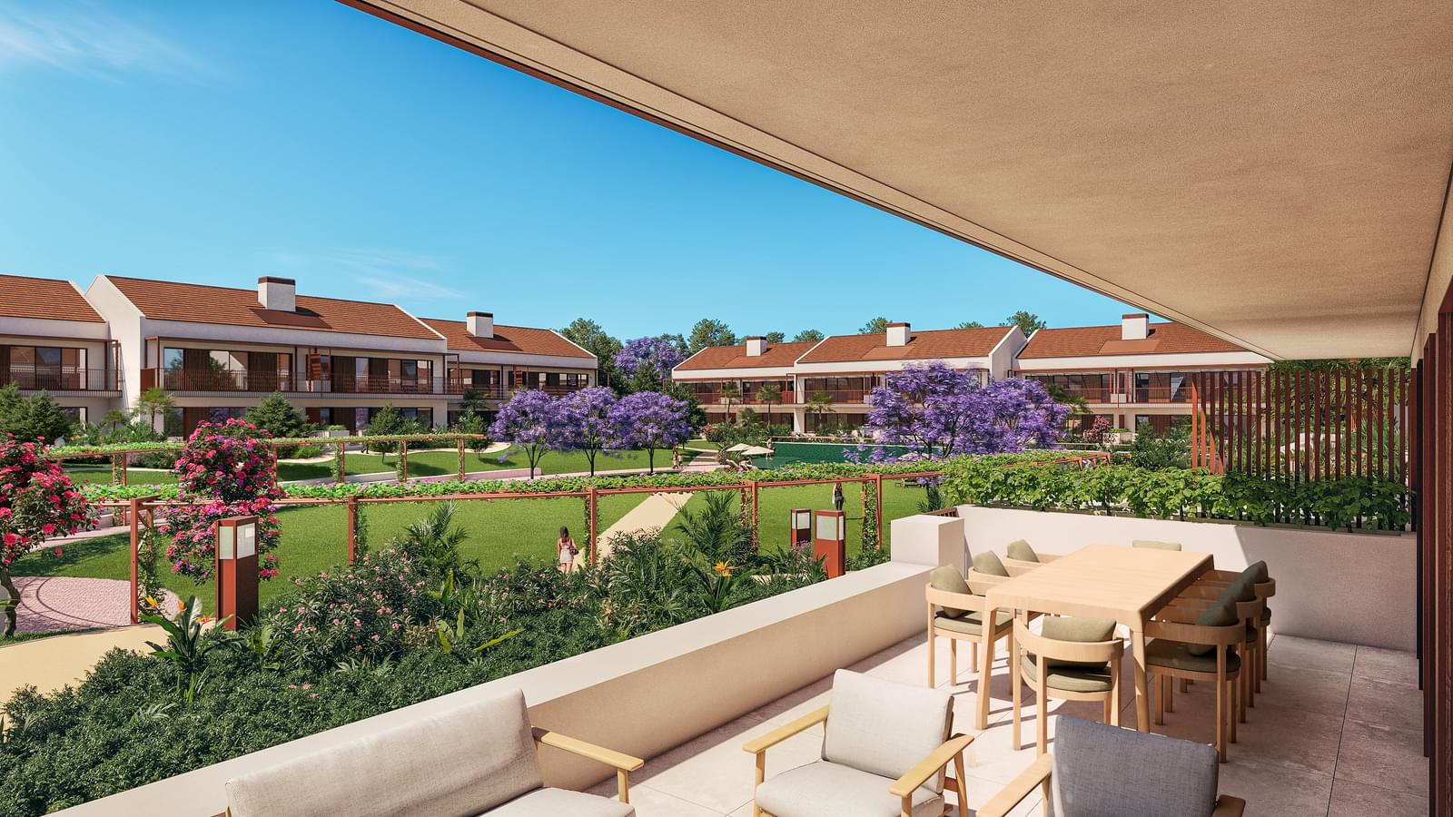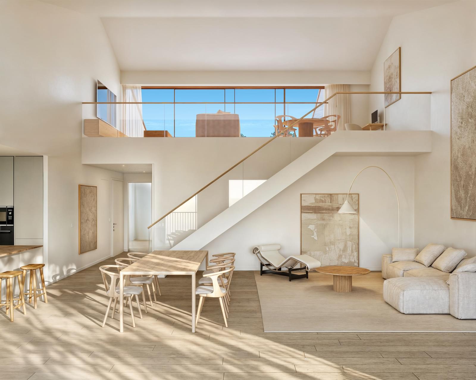 The architectural project, by the prestigious Future Architecture Thinking, features buildings with 4 units, with the following typologies: the Gardens units, consisting of ground-floor T2 and T3 units with spacious terraces and private gardens, and the Terraces units, which include duplex T2+1 and T3+1 units, distinguished by social areas with double-height ceilings, a spacious terrace, and an open-plan first floor with a panoramic solarium.