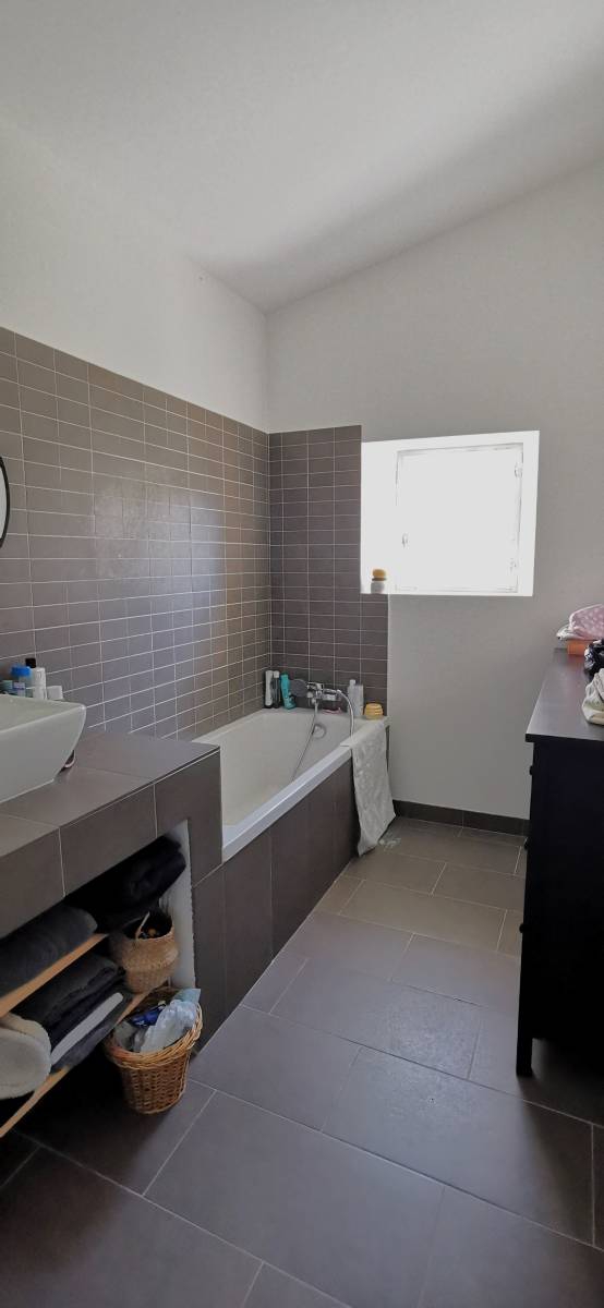 Upstairs, two well-appointed bedrooms ensure comfort and privacy, complemented by a bathroom and a shower room with WC. Thoughtfully designed for effortless living, this bastide radiates warmth and authenticity.
