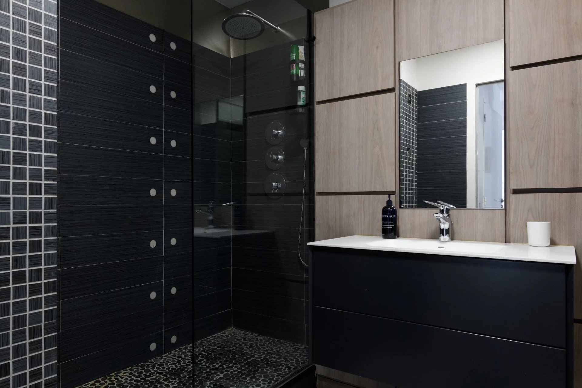 The sleeping area includes three comfortable bedrooms as well as two bathrooms with a contemporary design. Numerous built-in storage spaces make everyday life easier.