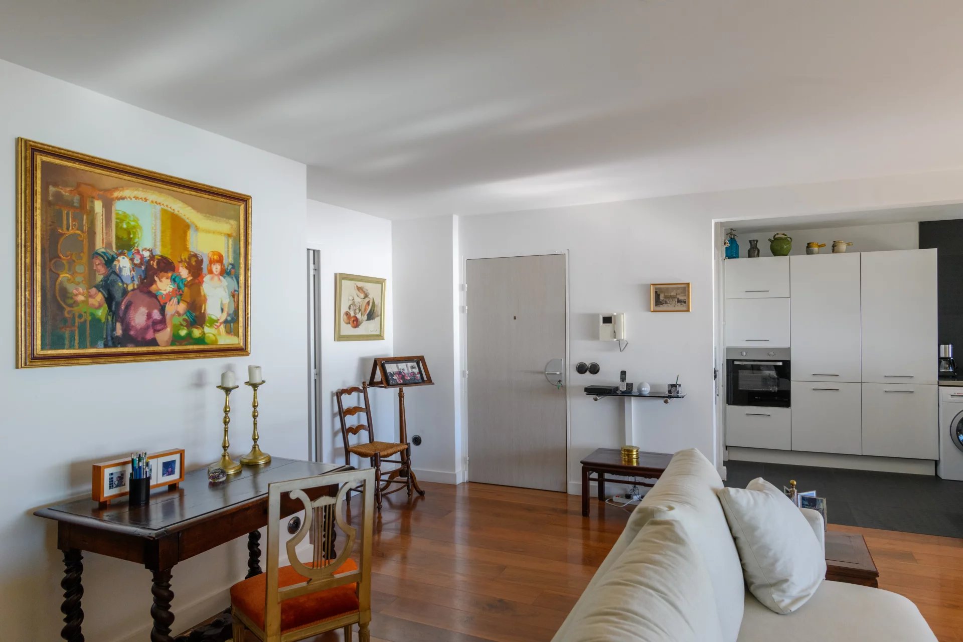 Located in a luxury residence with elevator, this property seduces from the moment you enter with its excellent general condition, with white walls and solid wood flooring which bring elegance and refinement.