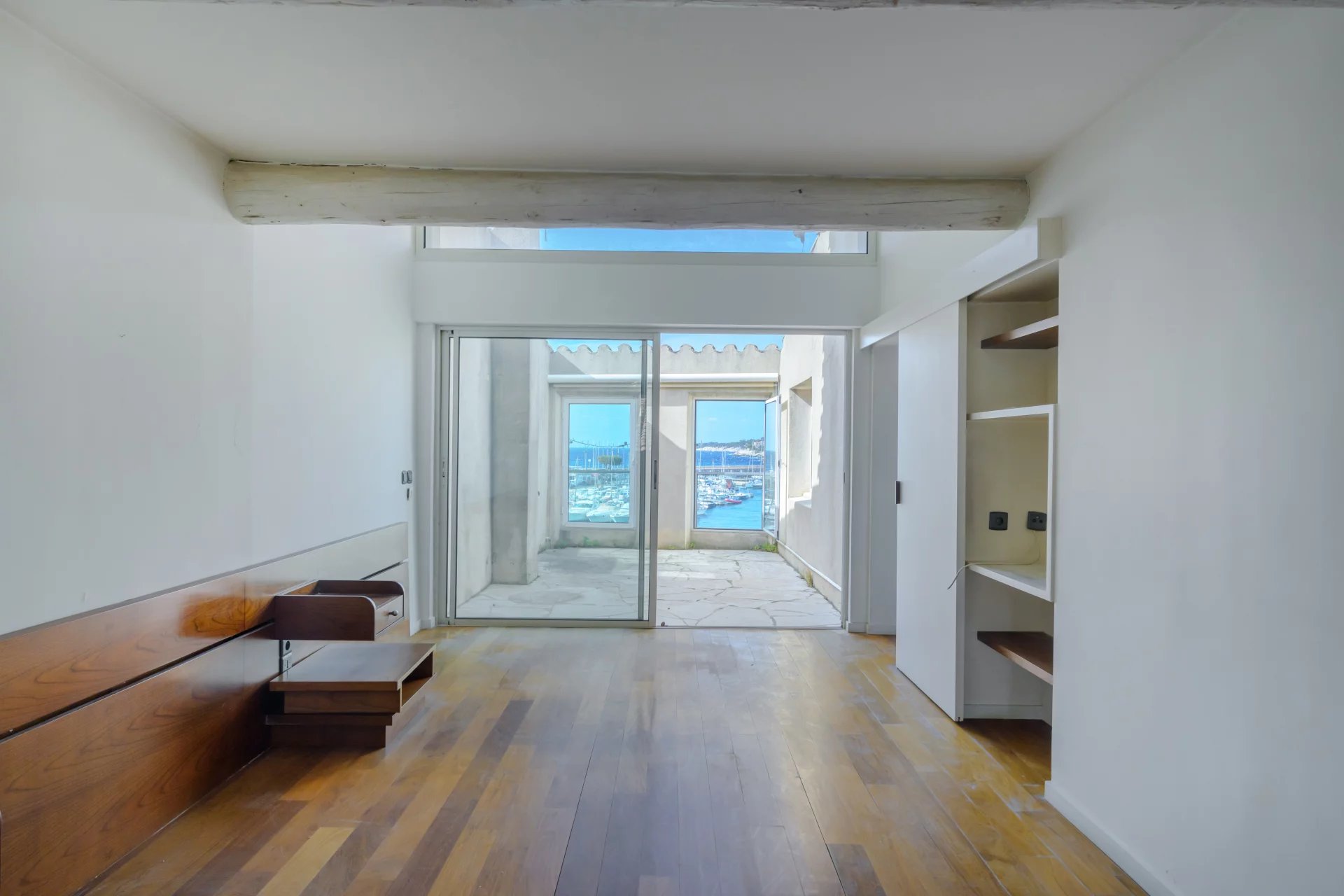On the upper floor, the 23 m2 master suite enjoys direct access to a south-facing rooftop terrace perfect for soaking up the sun and admiring views over the rooftops and the sea. A port-facing office, a library, a bathroom, and a bespoke dressing room inspired by yacht cabins complete this refined night area.