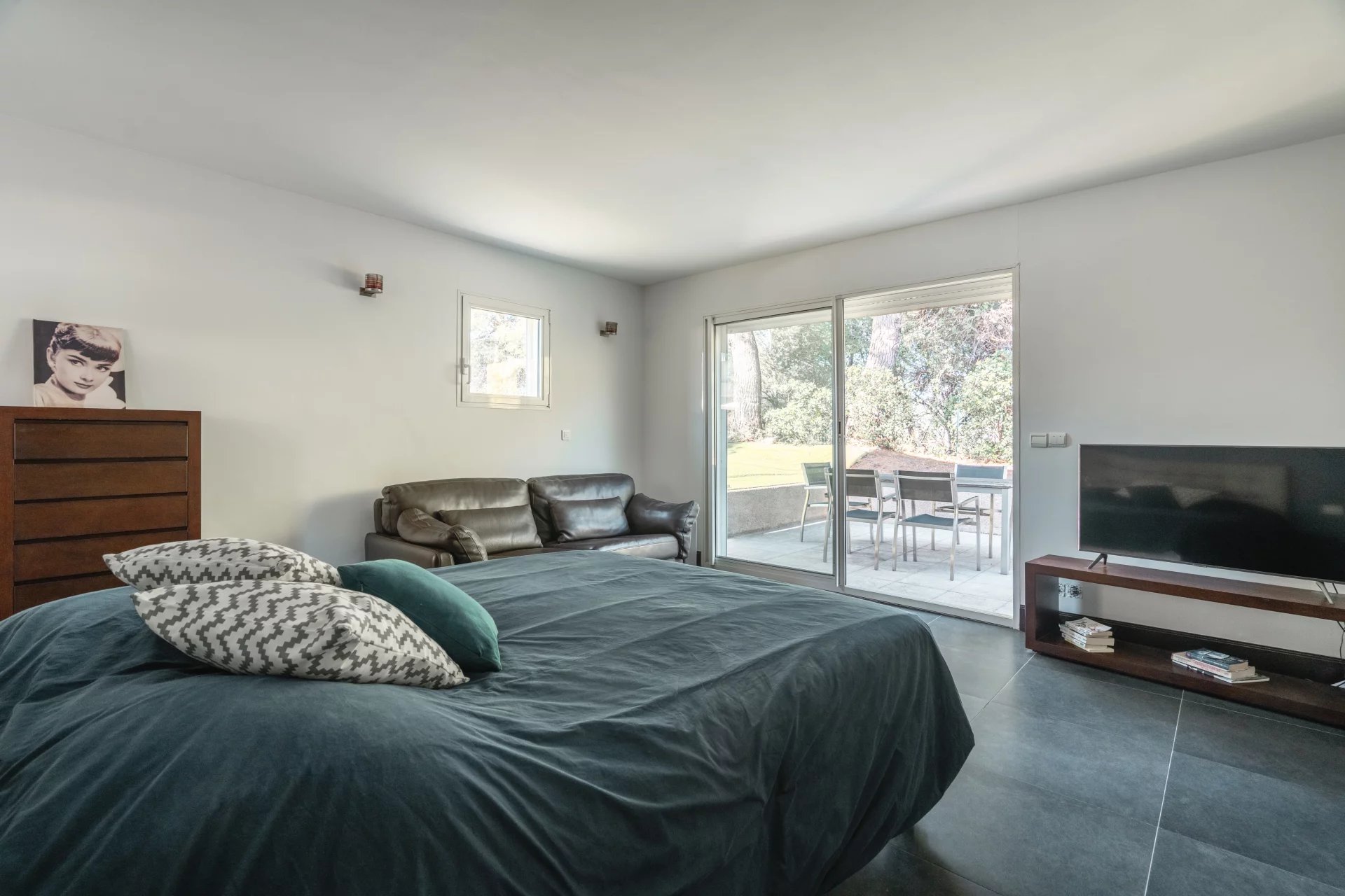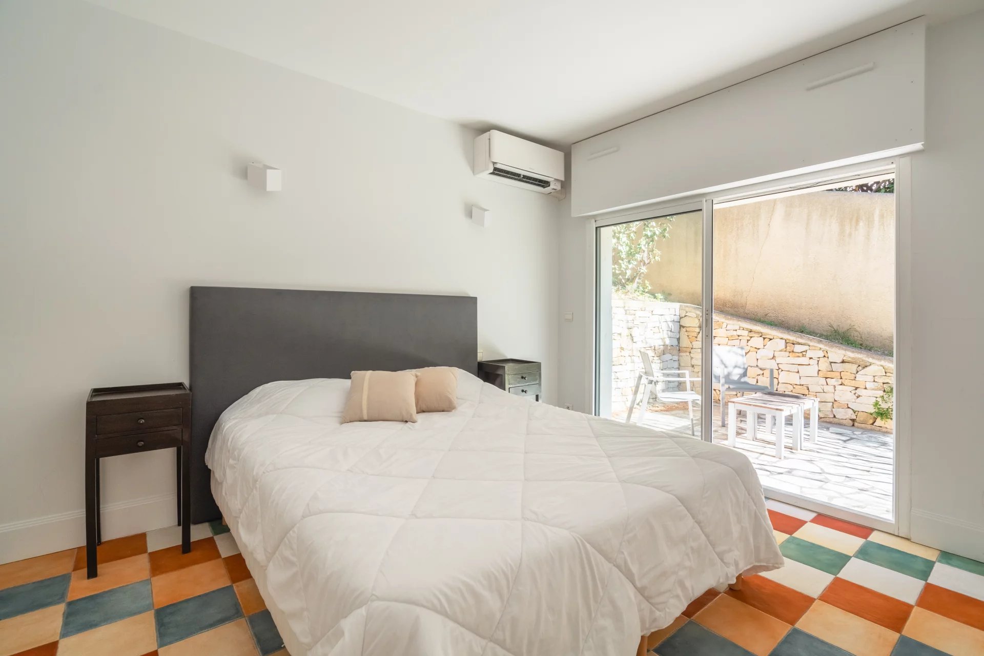 From the moment you arrive, the outdoor spaces reveal the unique character of the property. The carefully designed garden showcases Mediterranean vegetation including olive trees, mimosas, cypress trees, vines, and palm trees. Several terraces with varied exposures punctuate the property, allowing you to enjoy every moment of the day, between shade and sunlight.