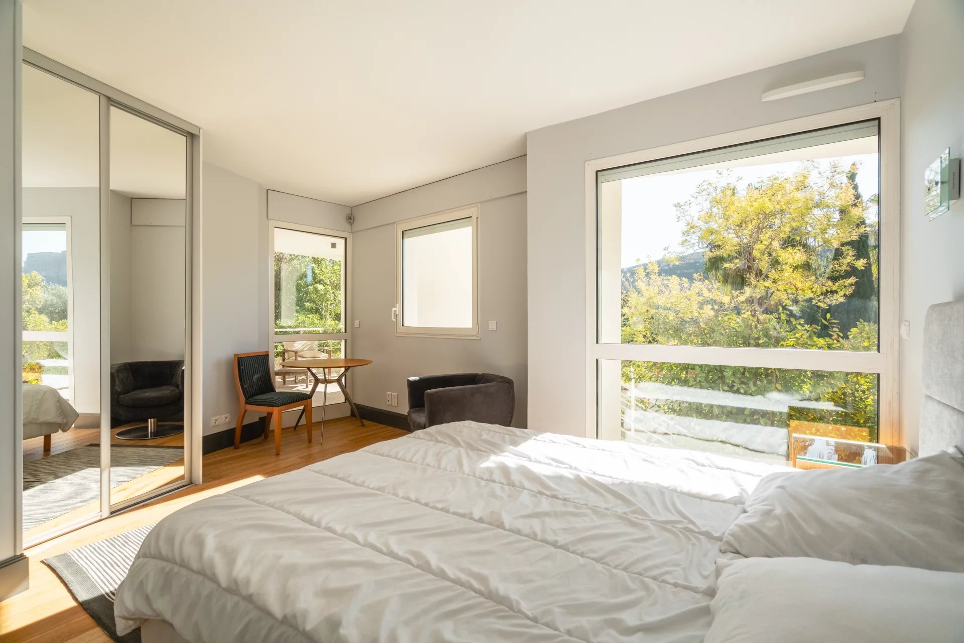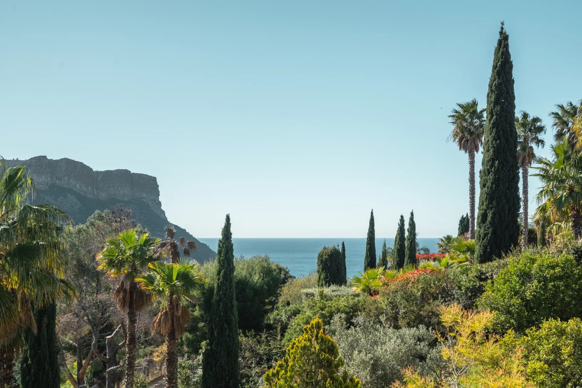 Bathed in natural light, it offers exceptional views over the Mediterranean Sea, Cap Canaille, the Couronne de Charlemagne, as well as the surrounding vineyards, creating a rare and ever-changing panorama throughout the seasons in a setting of natural beauty and refined elegance.