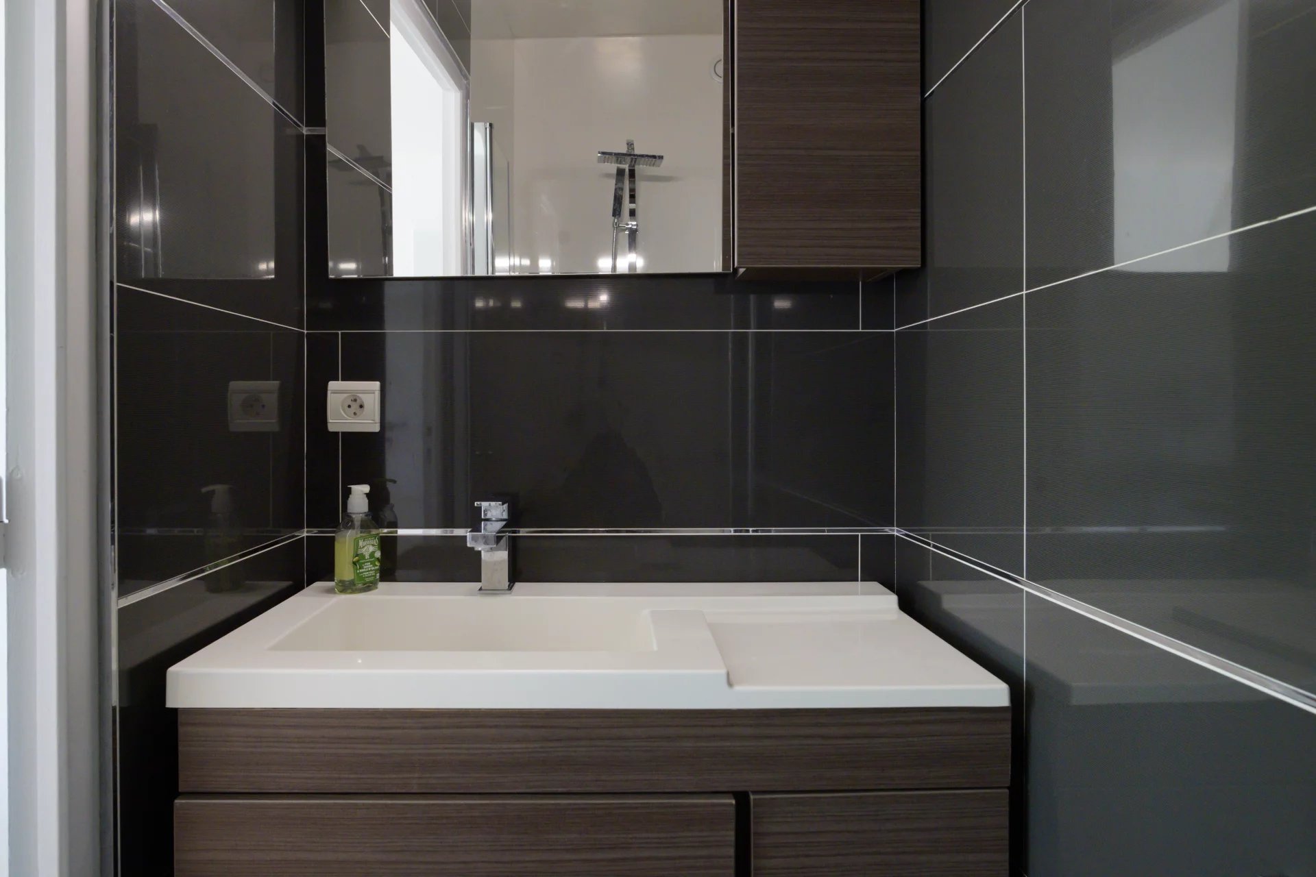 Designed across two levels and served by an elevator, the villa offers approximately 85 m2 of open-plan living space filled with natural light. The living room flows into a fully equipped kitchen, creating a convivial central space that opens onto two distinct terraces.