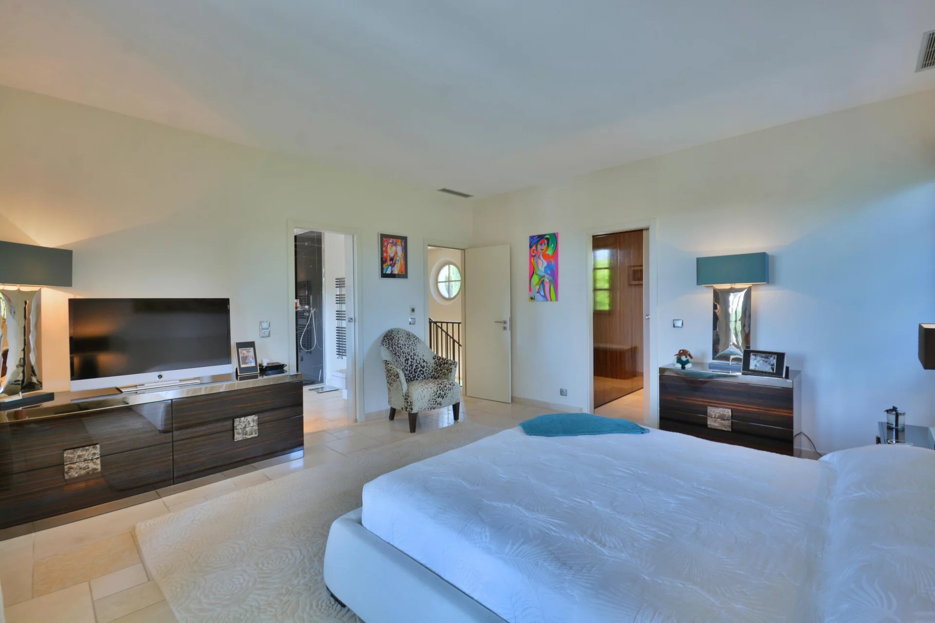Situated in a gated community of Castellaras, beautiful master property with a peaceful location and south facing, offering : entrance hall, vast and bright reception with a fireplace, dining room, fully luxuriously equipped kitchen, 4 en-suite bedrooms including a master suite with a walk-in closet.