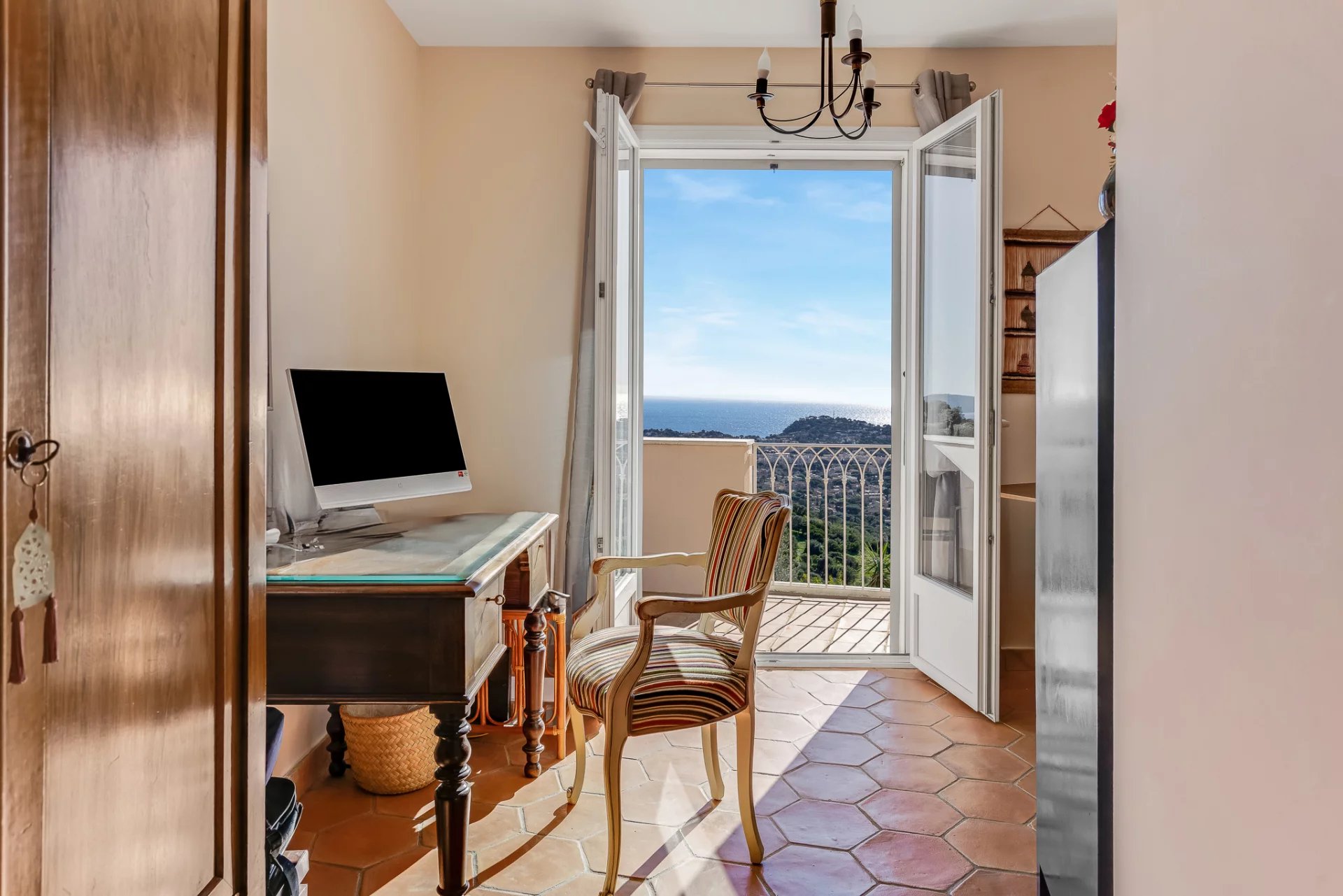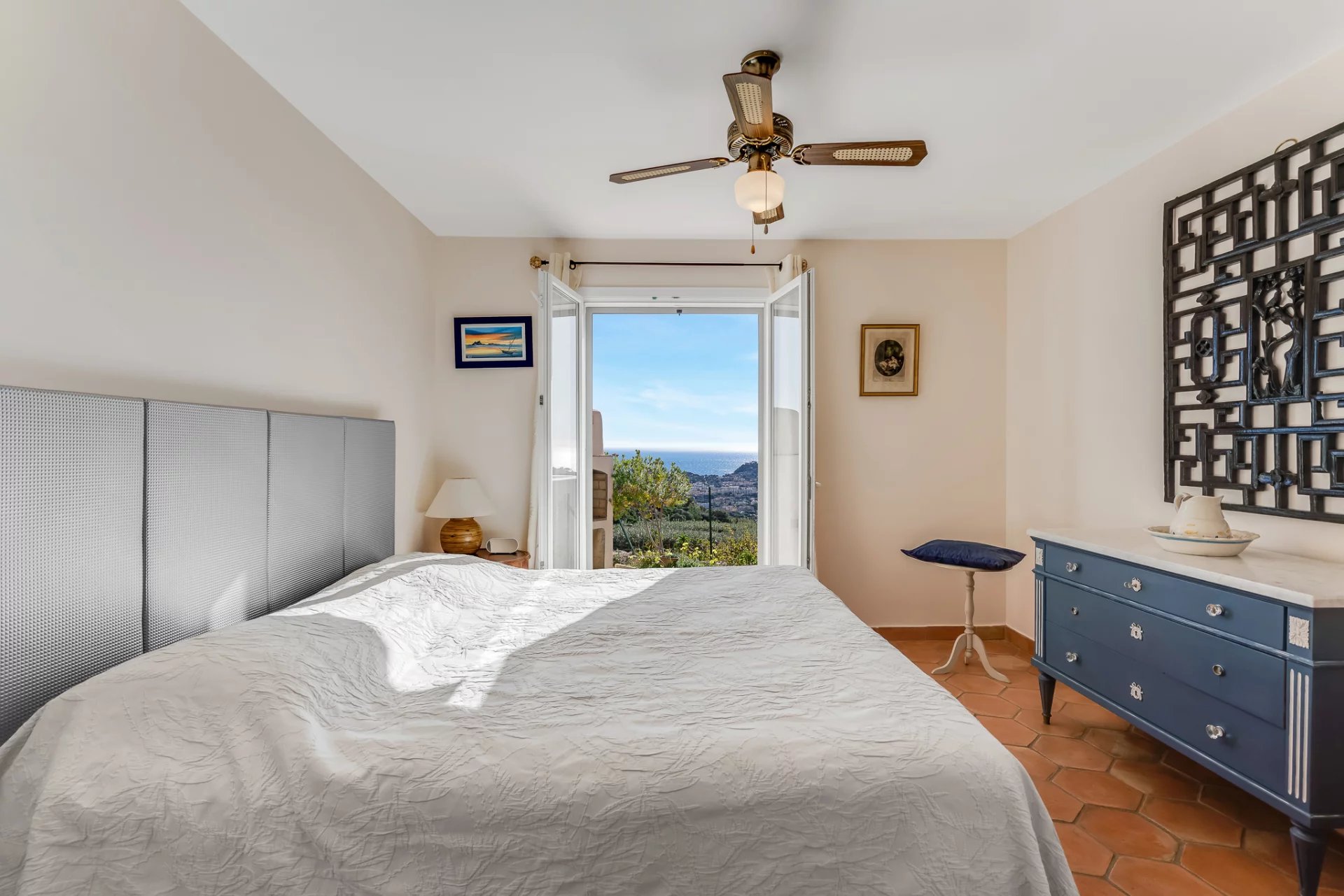Nestled in a commanding position at the end of a cul-de-sac in a quiet neighborhood, this elegant Provencal villa offers panoramic views from Cap Lardier to the Iles d’Or.