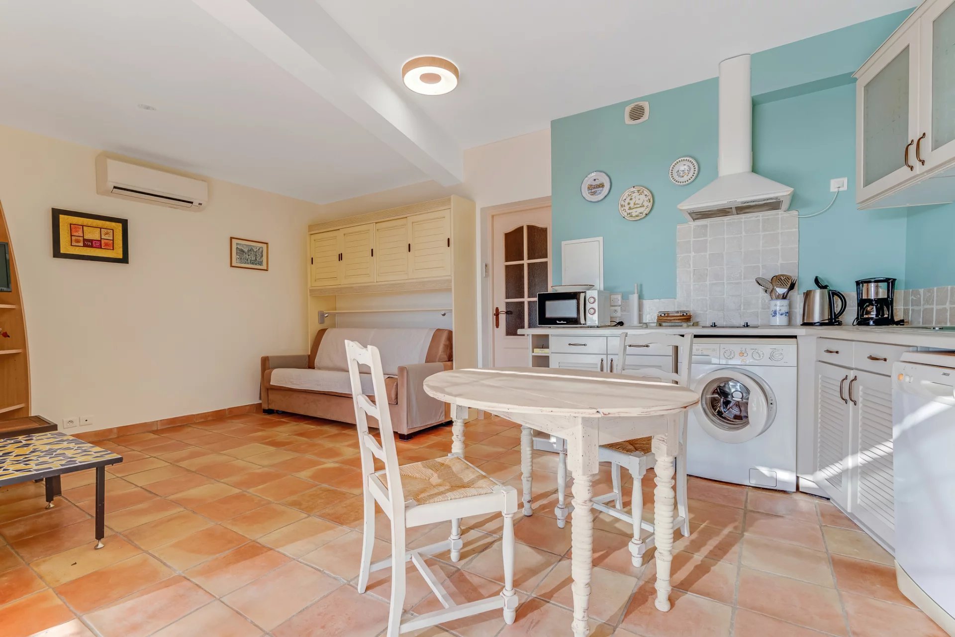 On the garden level, life revolves around a magnificent garden and its new infinity pool, lined with salt and Balinese stone. The self-contained apartment (bedroom, living room, kitchen, shower room, toilet) is ideal for guests or for private use.