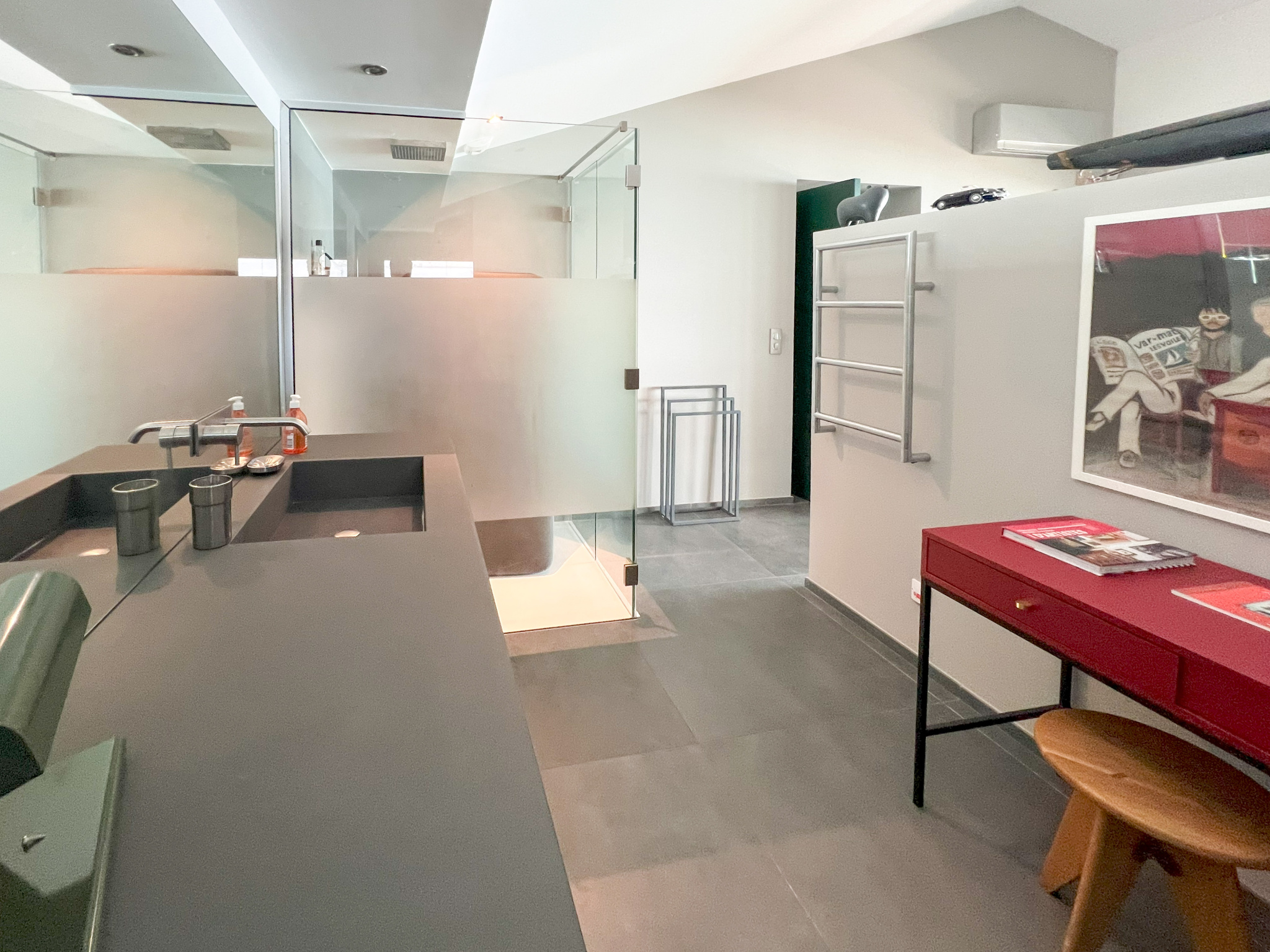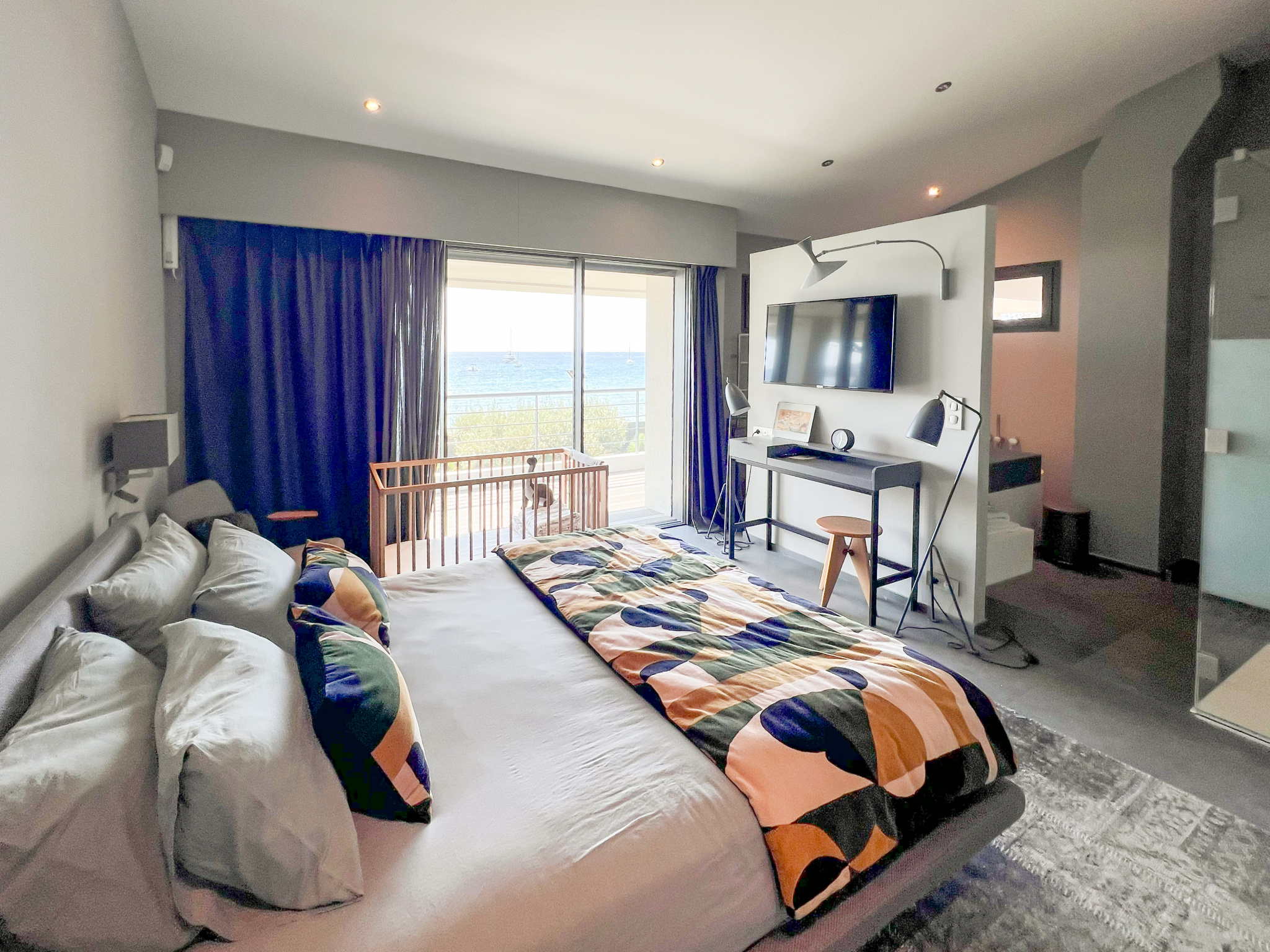 Upstairs, three bright suites all benefit from breathtaking sea views and direct access to a vast panoramic terrace of approximately 80 m2. Each bedroom has custom-made storage and a private bathroom, combining noble materials and high-end amenities.