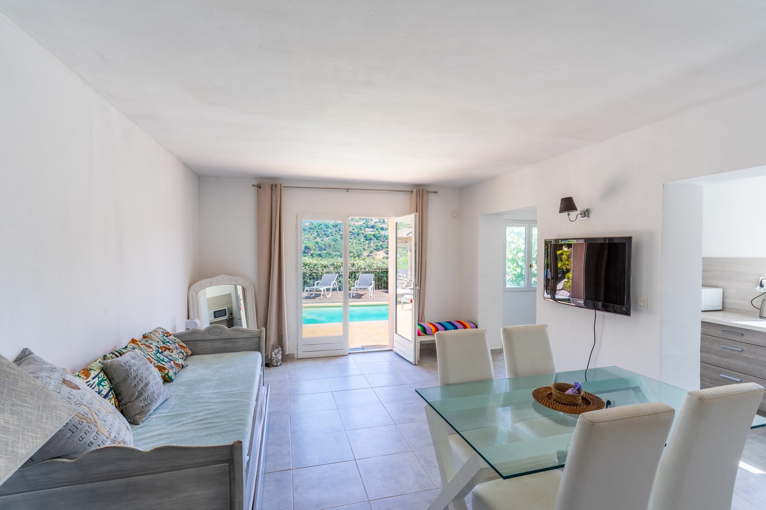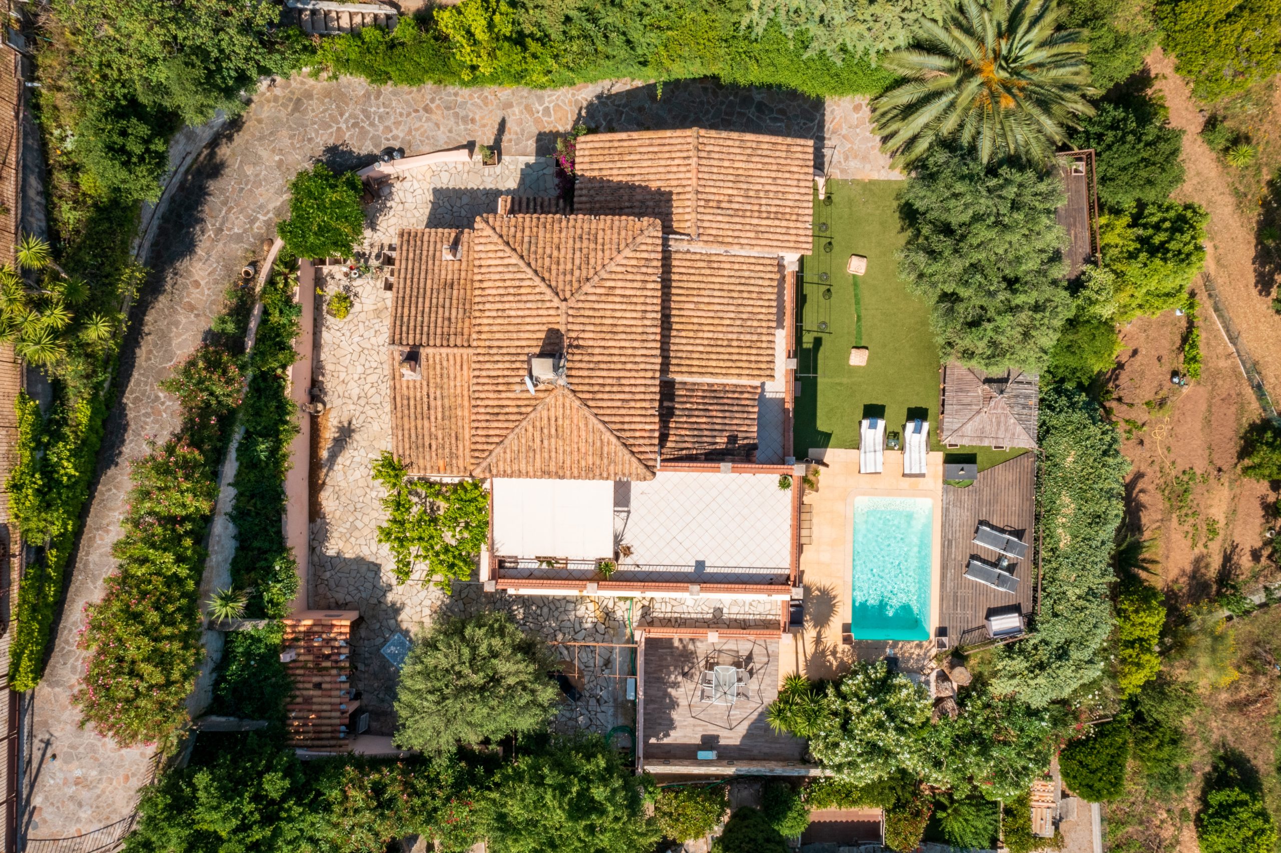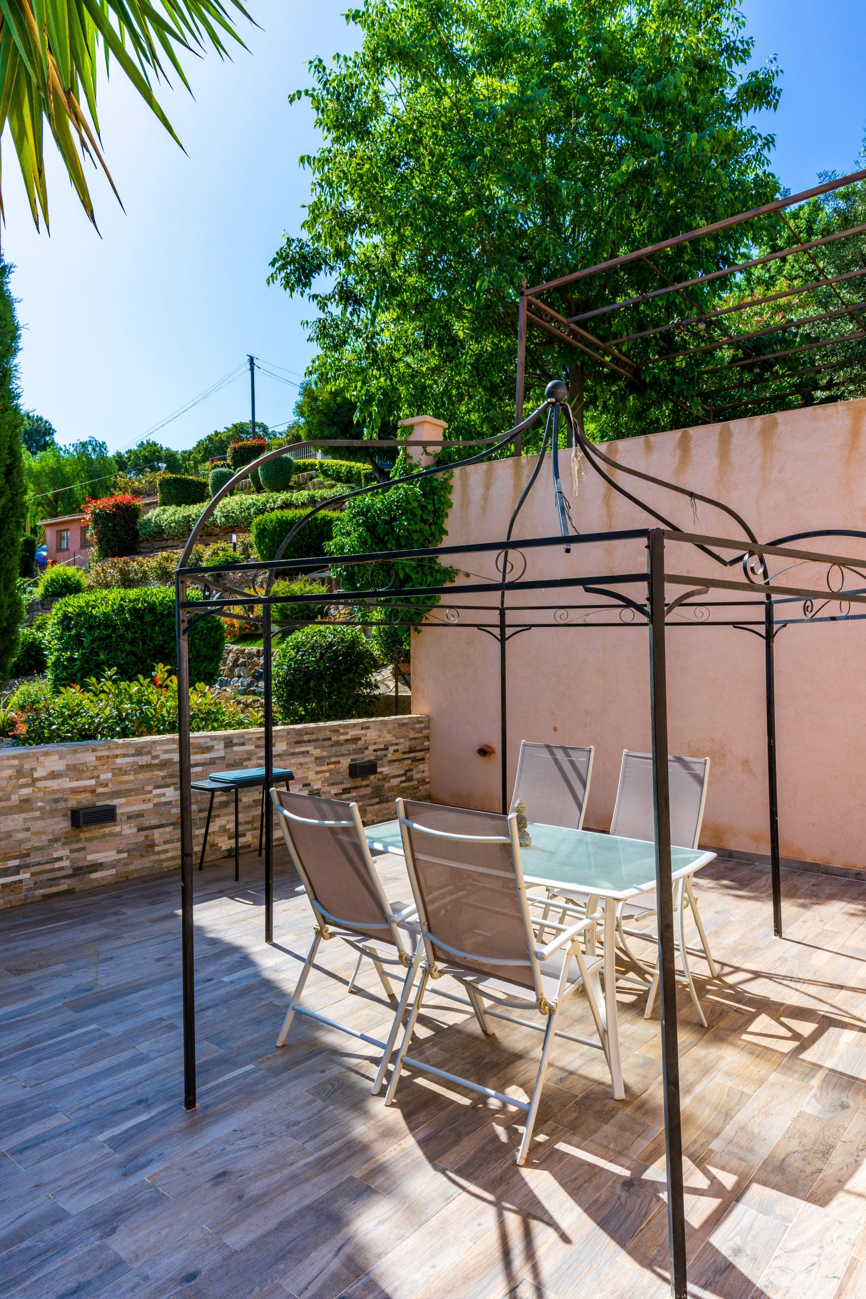 A beautiful swimming pool with its relaxation area, beautiful wooden pergola ideal for shaded dining. Several parking spaces complete this property.