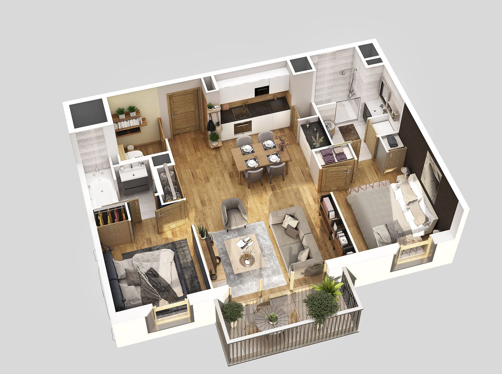 You will find this beautiful 2 bedroom apartment with a living on 63,02 sqm, located on the third floor.
