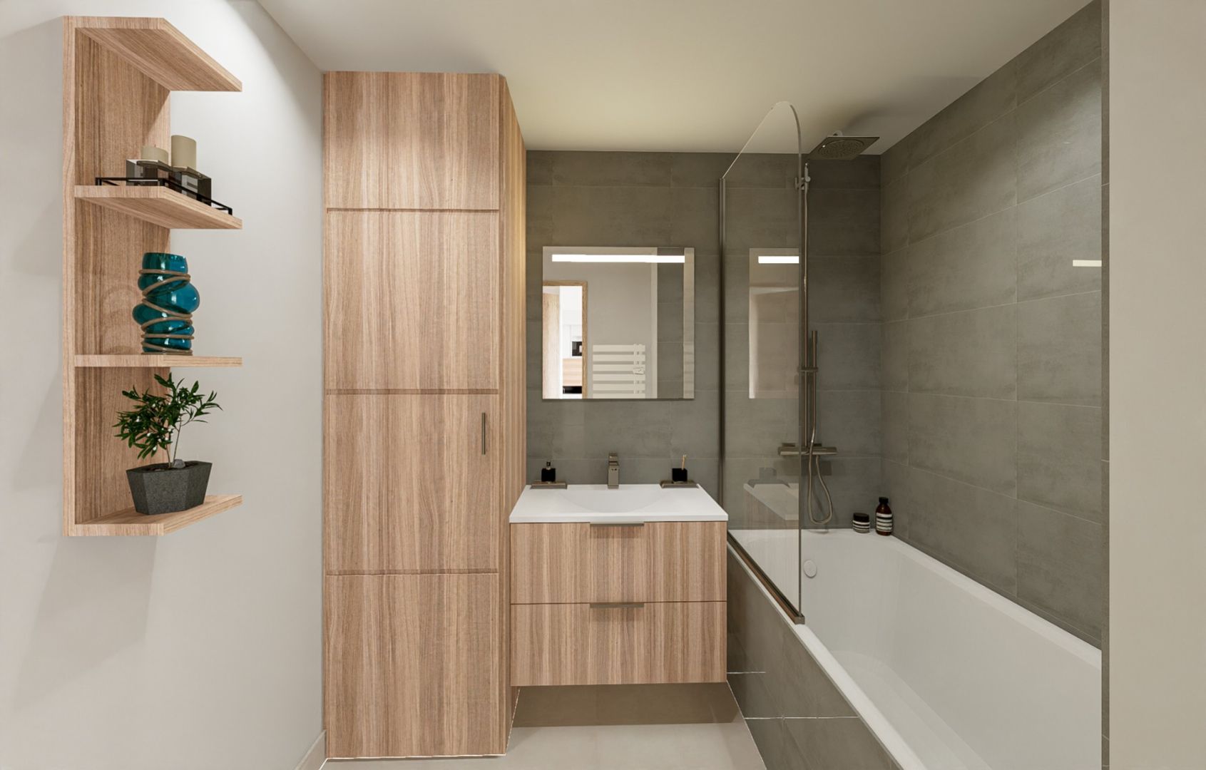 Located in the heart of the city centre of Chamonix, the world capital of skiing and mountaineering, the Blanc Mont Blanc programme enjoys a privileged environment. Bordered by the Couttet park, you will have access to the pedestrian shopping streets as well as the Montenvers train station and the Aiguille du Midi. Its architecture, inspired by the traditional codes of the Chamonix identity, reinforces its timeless character, a guarantee of value for your property. You will find this beautiful flat of type T2 with a living area of 51.34 sqm. It is composed of a double bedroom en suite, a kitchen open to the living room with a clear view of the mountains. A cellar, a ski locker and a car park complete the property. VAT refundable Non-contractual visuals.