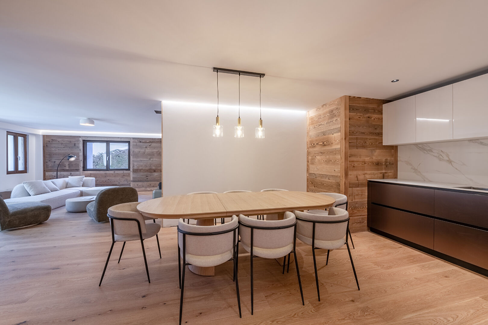 In the heart of the Moussoux hamlet, this 18th-century farmhouse has been beautifully renovated into an exceptional property. Spread over three levels, it now offers two spacious apartments, each with breathtaking views. Apartment A, with a generous surface area of approximately 150 sqm, occupies the entire garden level and enjoys a privileged setting with its private garden and covered terrace. It features three beautiful en-suite bedrooms and a living area of over 70 sqm. An outdoor parking space is also included. Particular attention has been paid to the materials and finishes of this renovation. Feel free to contact us for more information.