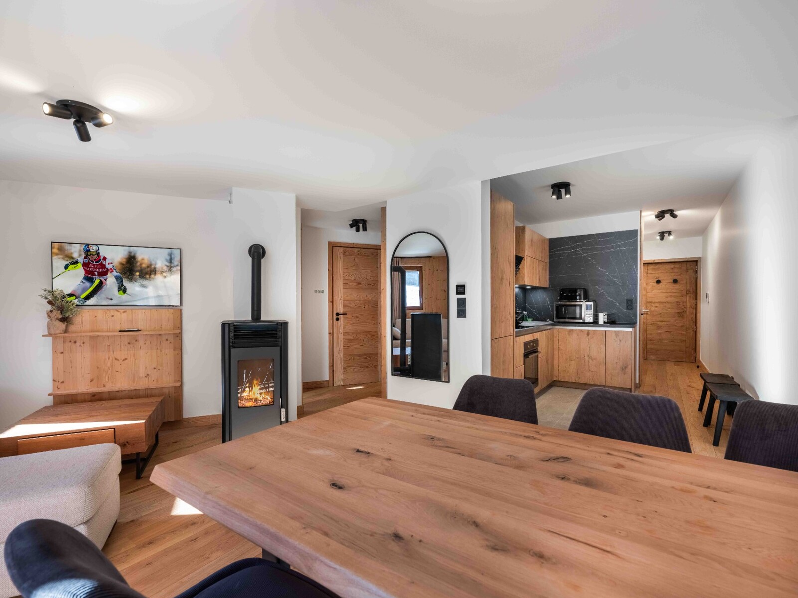 Come and discover this apartment that can accommodate 4 people with its double bedroom and mountain nook. It also features a beautiful living area with a wood stove and a lovely south-facing terrace.