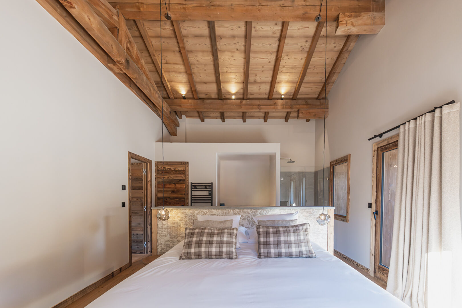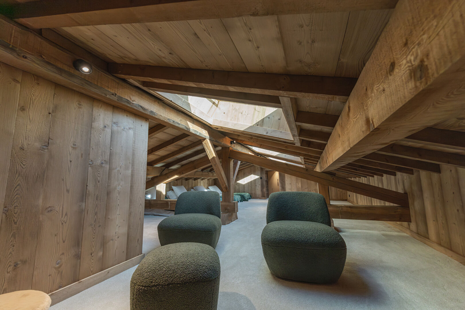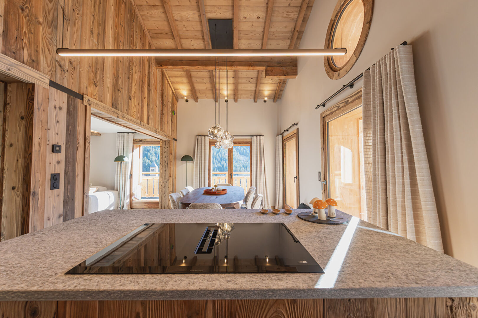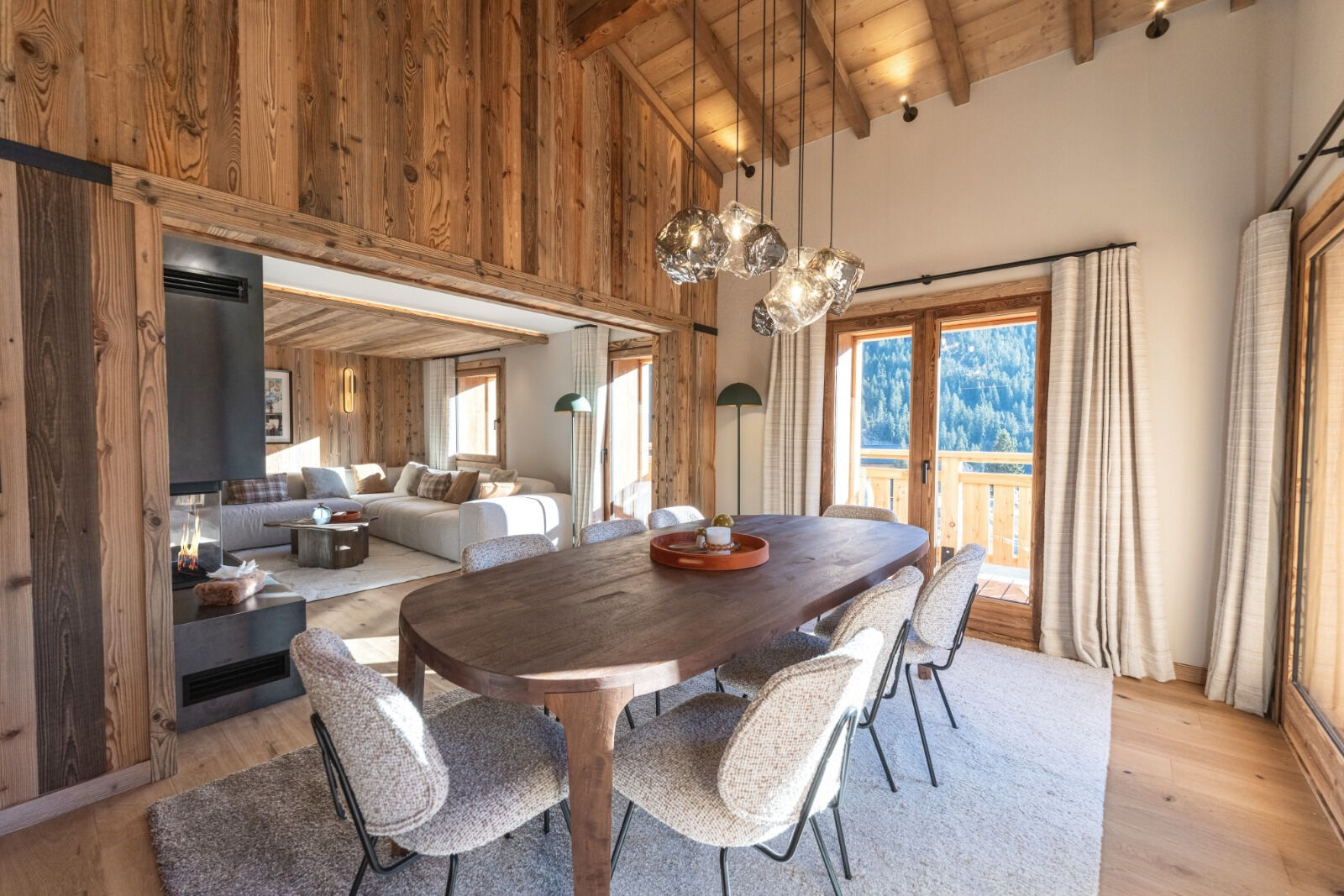Located within an intimate condominium, ideally situated in the immediate vicinity of the resort centre, shops, and the ski lifts of Champagny-en-Vanoise, discover this superb five-room apartment of 202,40 sq.m (including 138,27 sq.m Carrez), recently renovated with high-quality finishes. This rare property stands out for its spacious, light-filled living area, featuring a fully equipped open-plan kitchen opening onto the living room, enhanced by a fireplace that creates a warm and welcoming atmosphere. The apartment offers four bedrooms, including one en suite, as well as a generous fitted mezzanine, providing multiple possibilities such as a reading lounge, office, or additional sleeping area. Outside, a beautiful terrace invites relaxation with its private sauna and panoramic mountain views, further enhanced by the authentic charm of the village church. This exceptional property is sold with two garages, perfectly completing this rare and privileged mountain lifestyle.