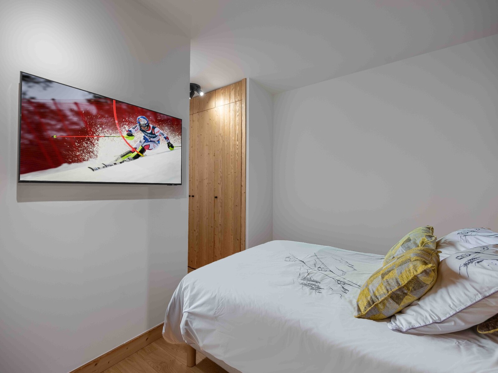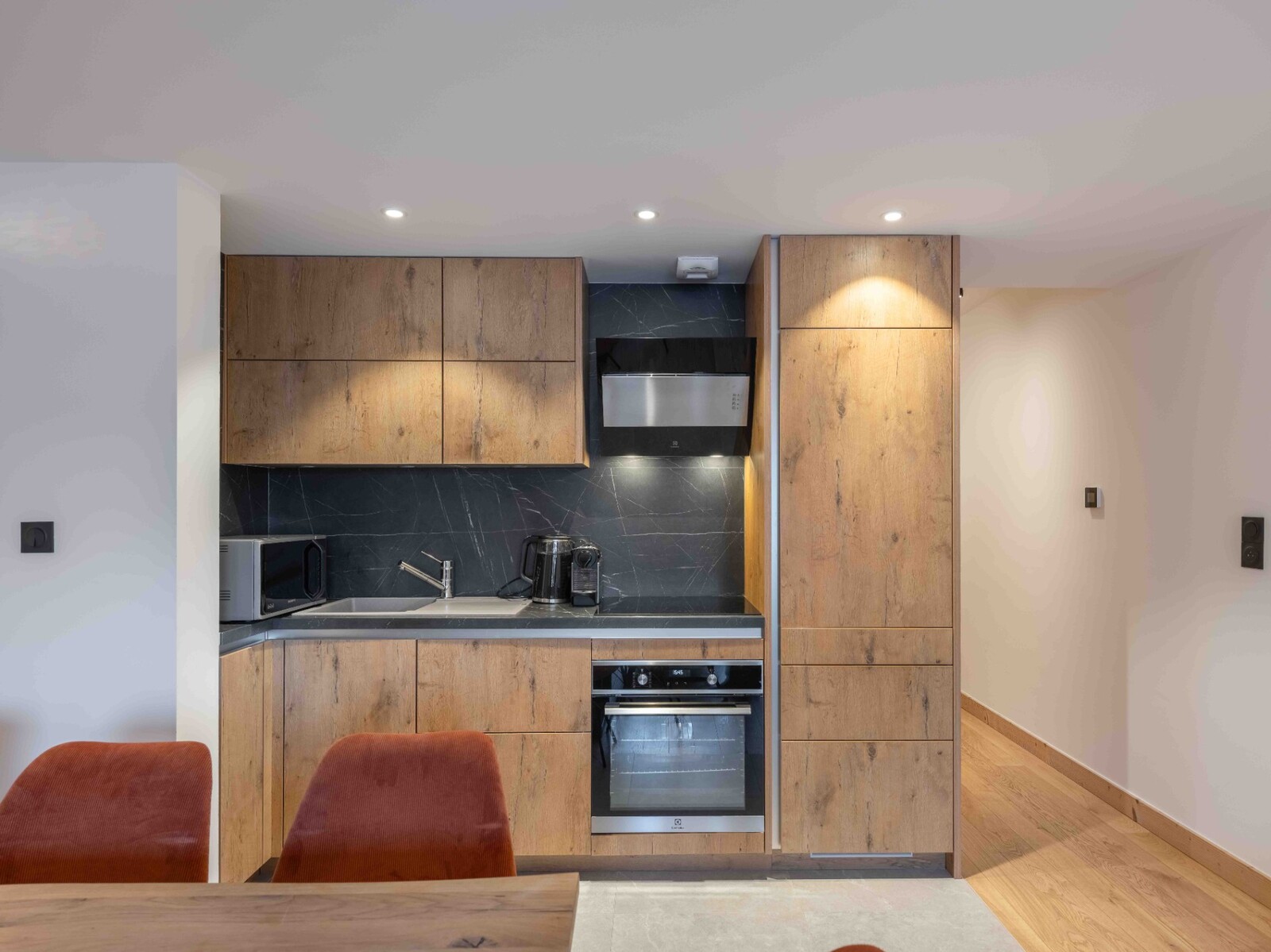 Less than 600 meters from the slopes, this lovely two-room apartment is located within a premium residence on the heights of Champagny en Vanoise. In a human-scale residence with 14 apartments, this apartment consists of 2 double bedrooms to accommodate 4 people. The balcony extends the living area, while the wood stove in the living room will warm your winter evenings.