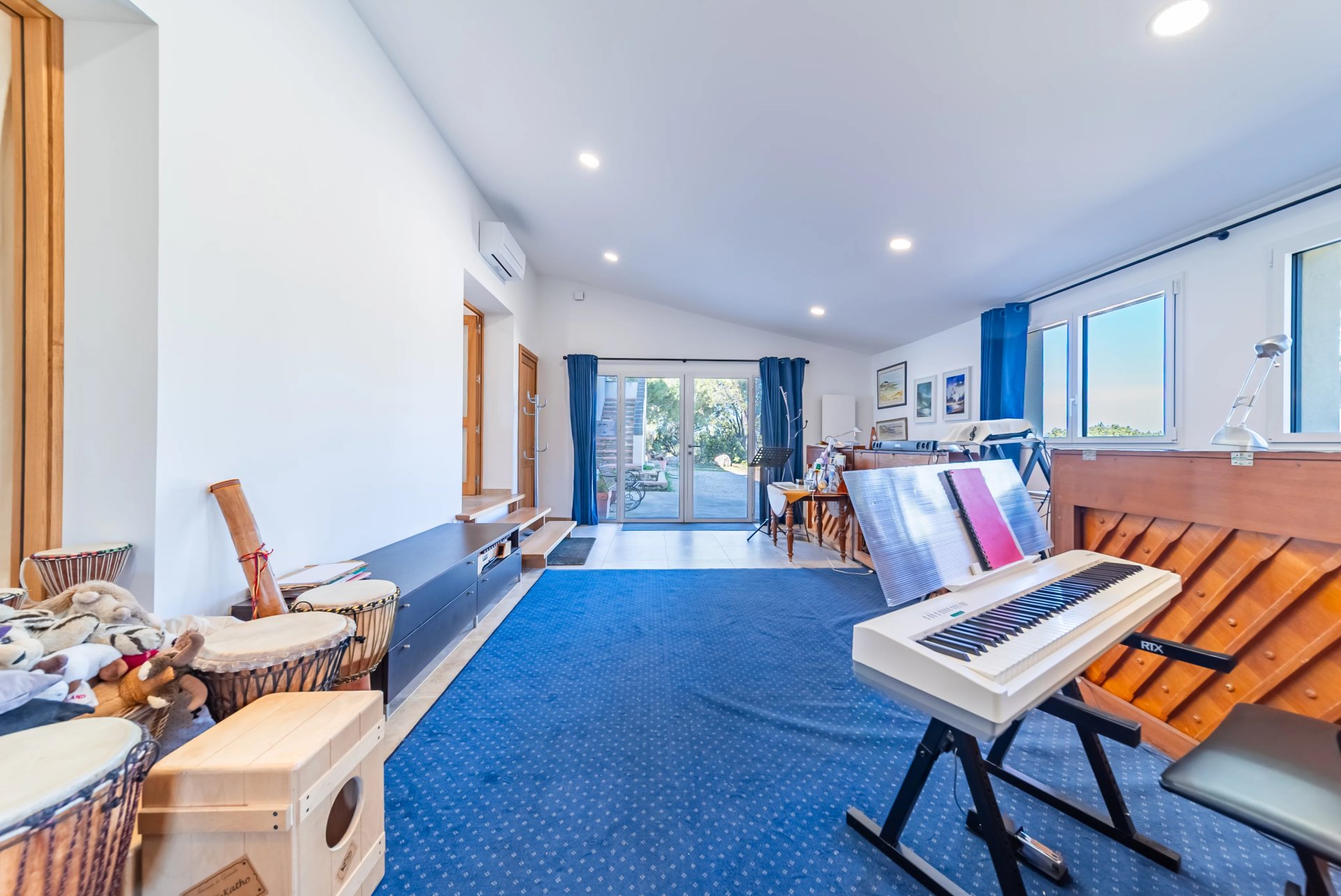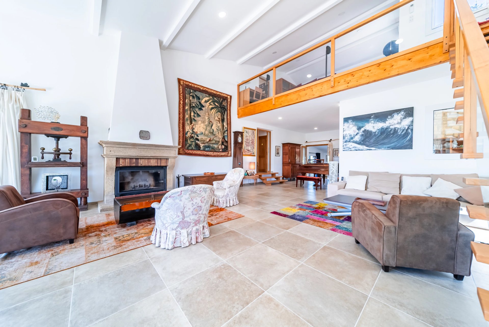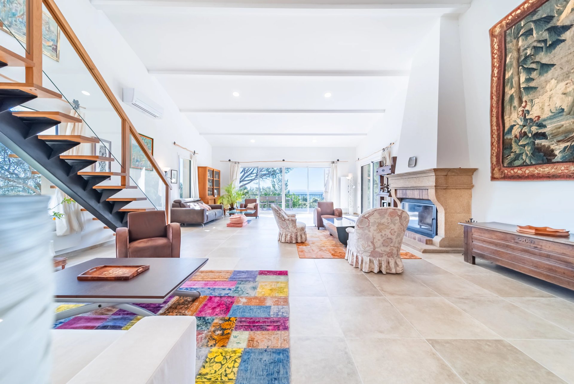 The house has been entirely redesigned, featuring bright, open spaces that extend onto expansive south-facing terraces. The reception areas flow seamlessly into the outdoors, creating a lifestyle fully oriented toward the surrounding landscape.