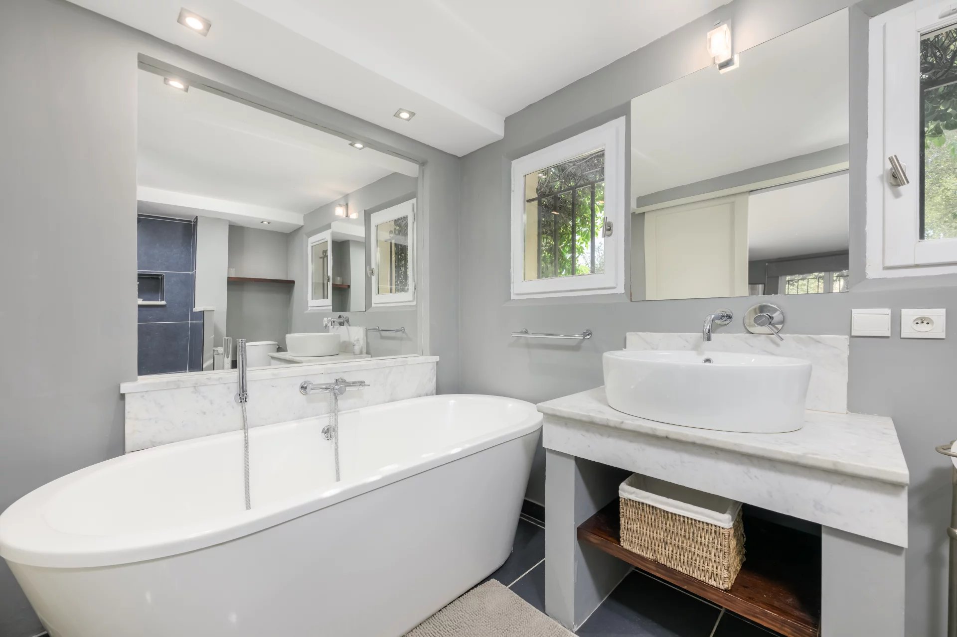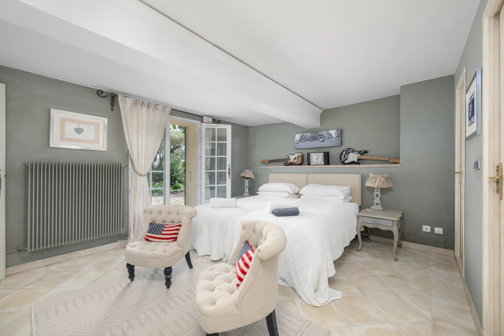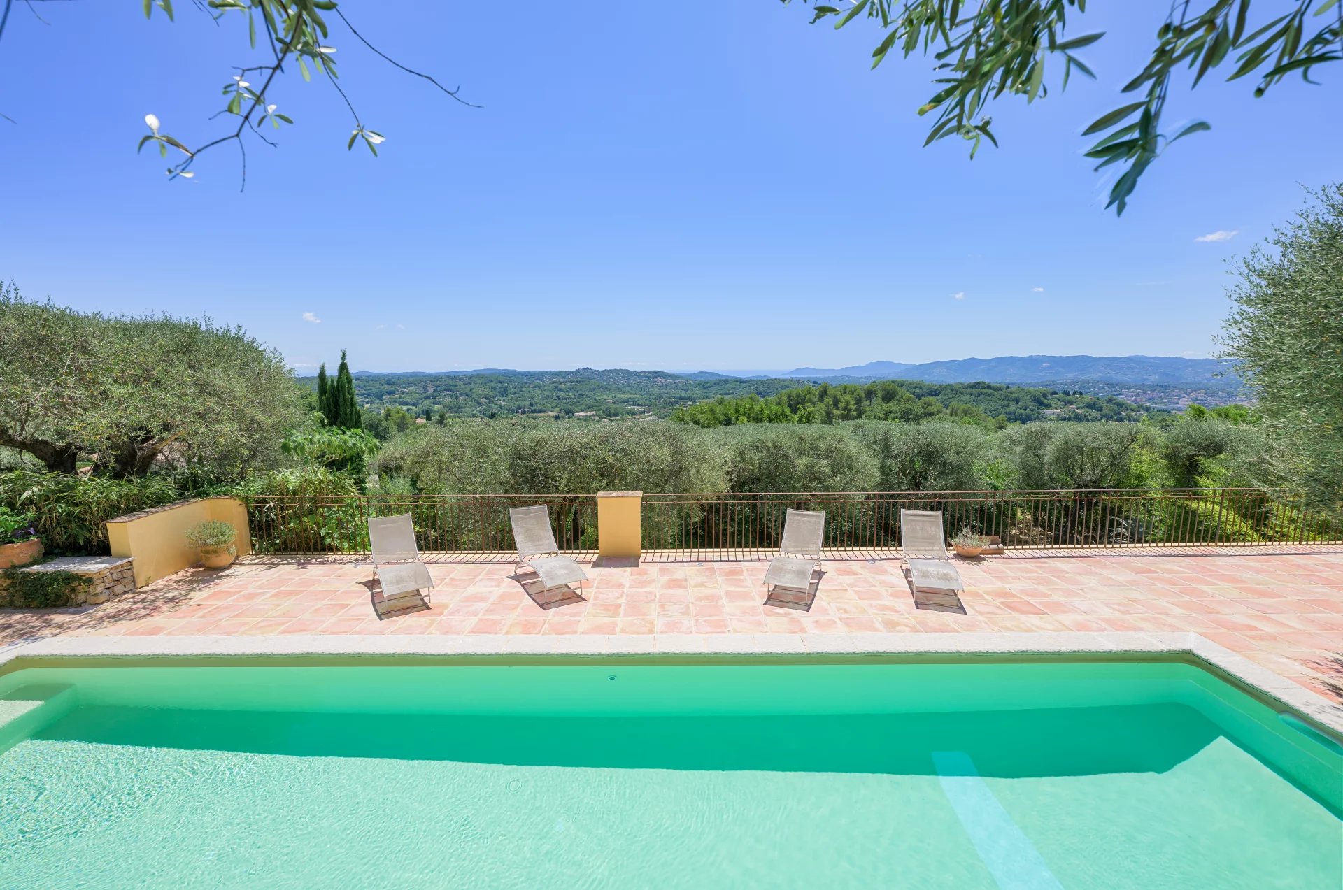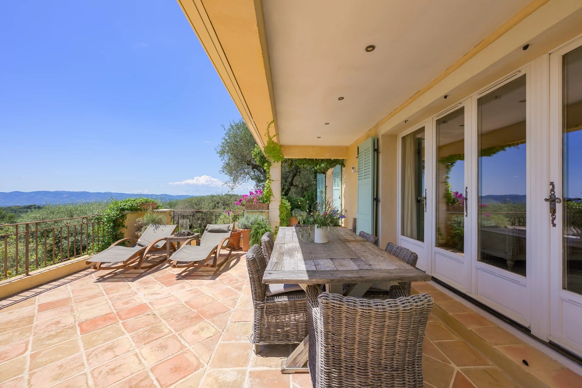Peacefully nestled top hill in Cannes Countryside this charming Provencal-style villa benefits from panoramic views stretching down to the sea and the Esterel massif.