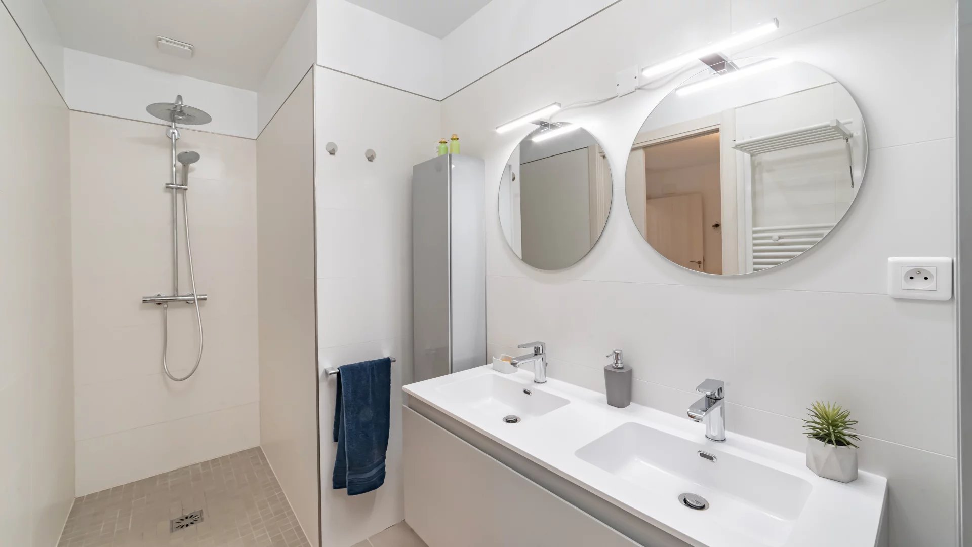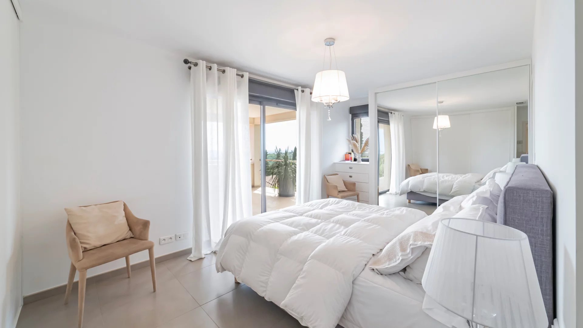 On 1st floor: Master bedroom opening onto covered terrace with 2 dressing rooms, 1 bathroom with walk-in shower, separate toilet – 1 study opening onto terrace – 1 bedroom with bathroom, shower and toilet.