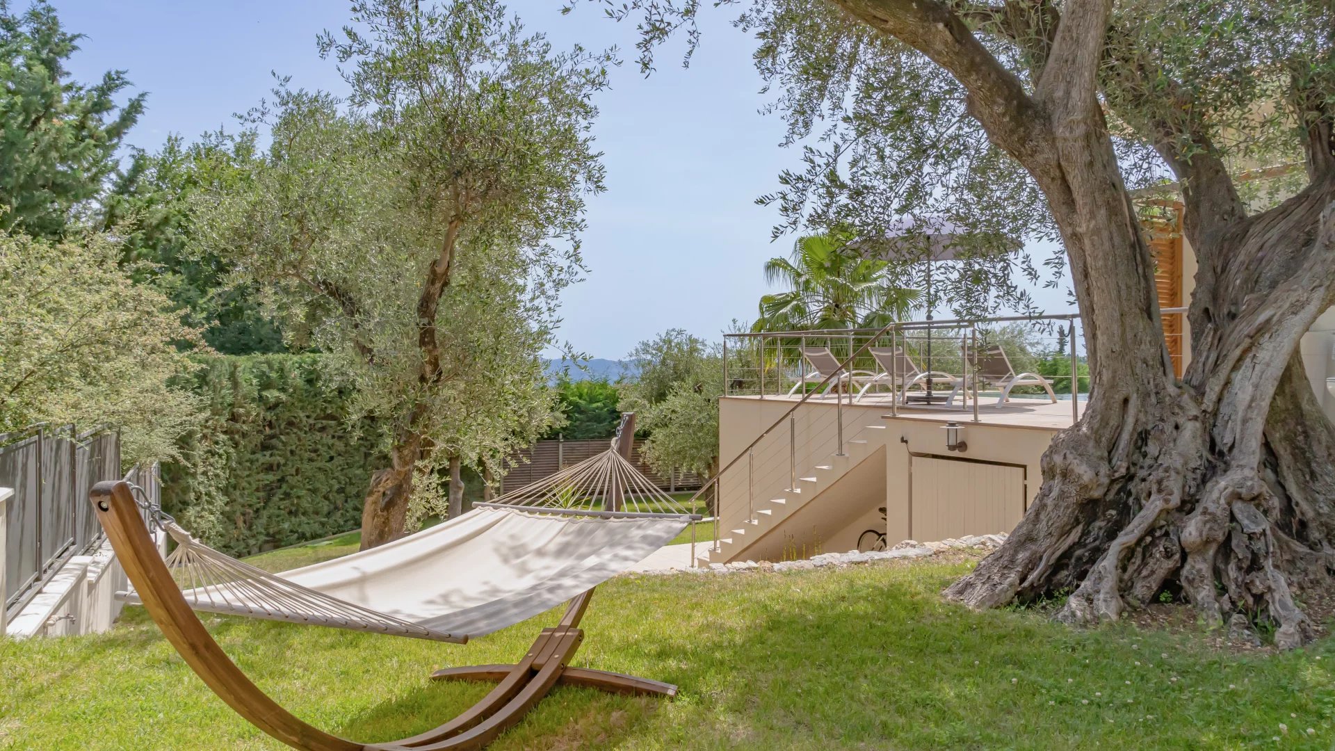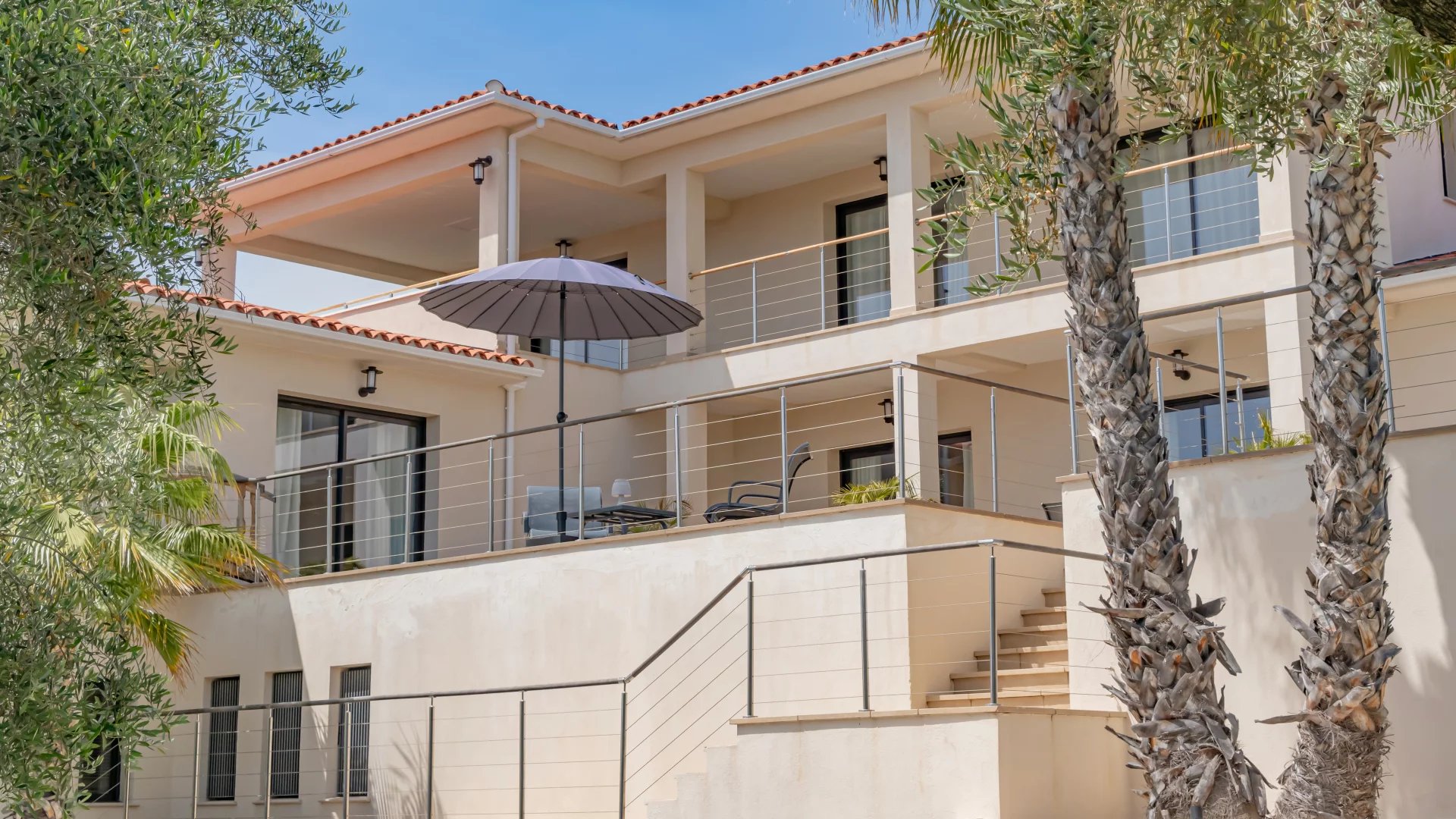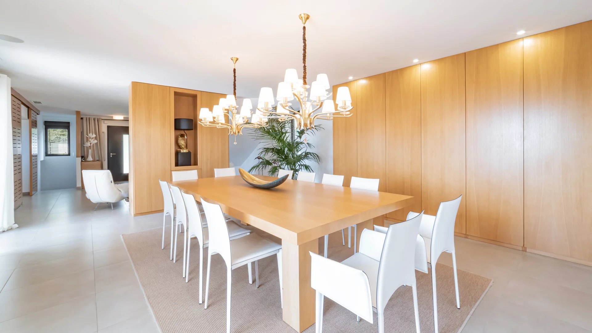 Ground Floor: 1 bedroom apartment with bedroom, bathroom, separate toilet, kitchen, laundry room, large wine cellar; Fully-equipped gym, Boules court, vehicle charging station, large parking area and fully paved driveway; Sprinkler system and automatic gate – Exterior lighting throughout the property, including the garden – Interior and exterior security cameras – Fiber optics and home automation for the entire villa – Integrated reversible air conditioning – Tiled infinity pool with self-cleaning system.